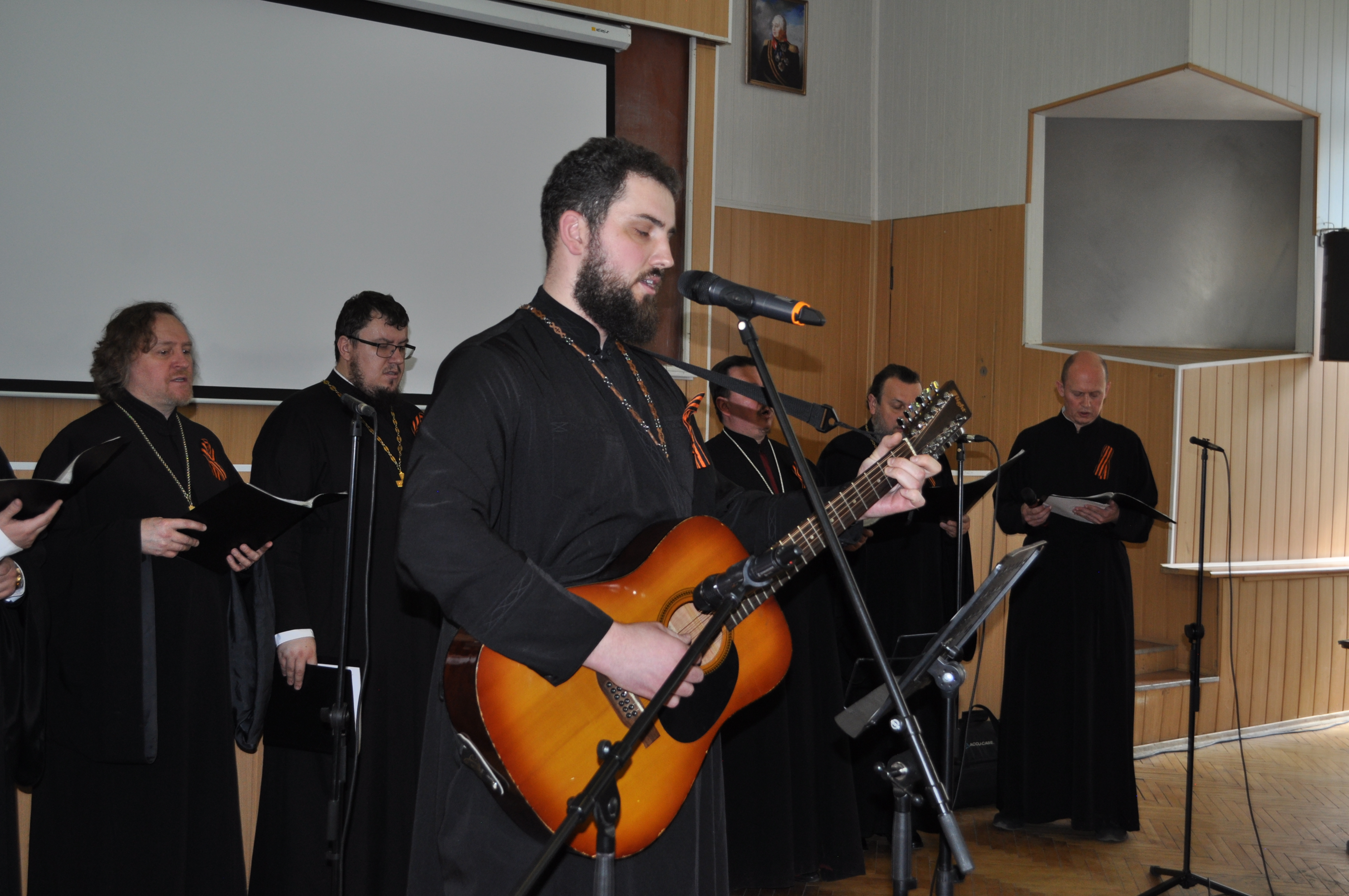 После диктанта для всех присутствующих духовенством были исполнены духовные и военно-патриотические песнопения. Продолжил выступление песнями военных лет Алексей Васяев. В завершение концерта исполнители поздравили всех присутствующих с праздником Пасхи и наступающим Днем 80‑летия Победы в Великой Отечественной войне, пожелав многая и благая лета!