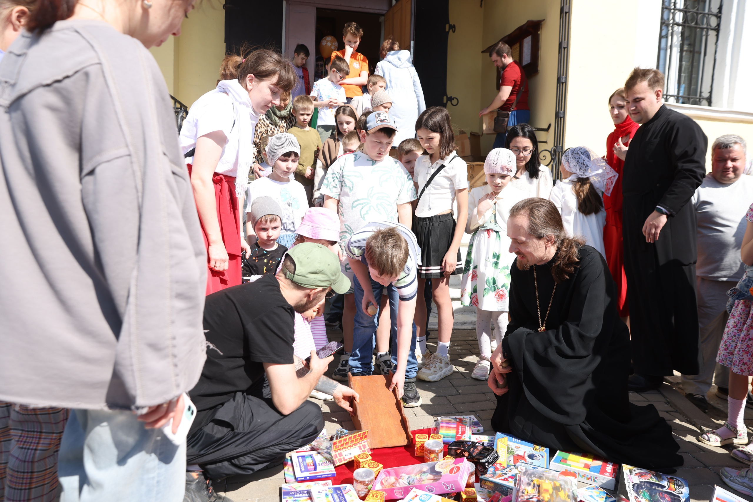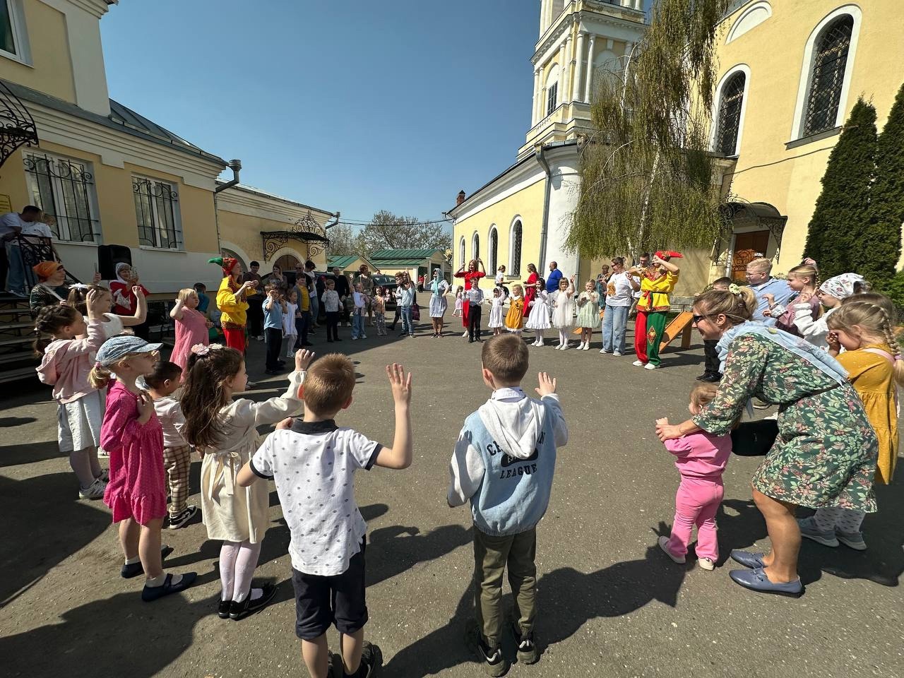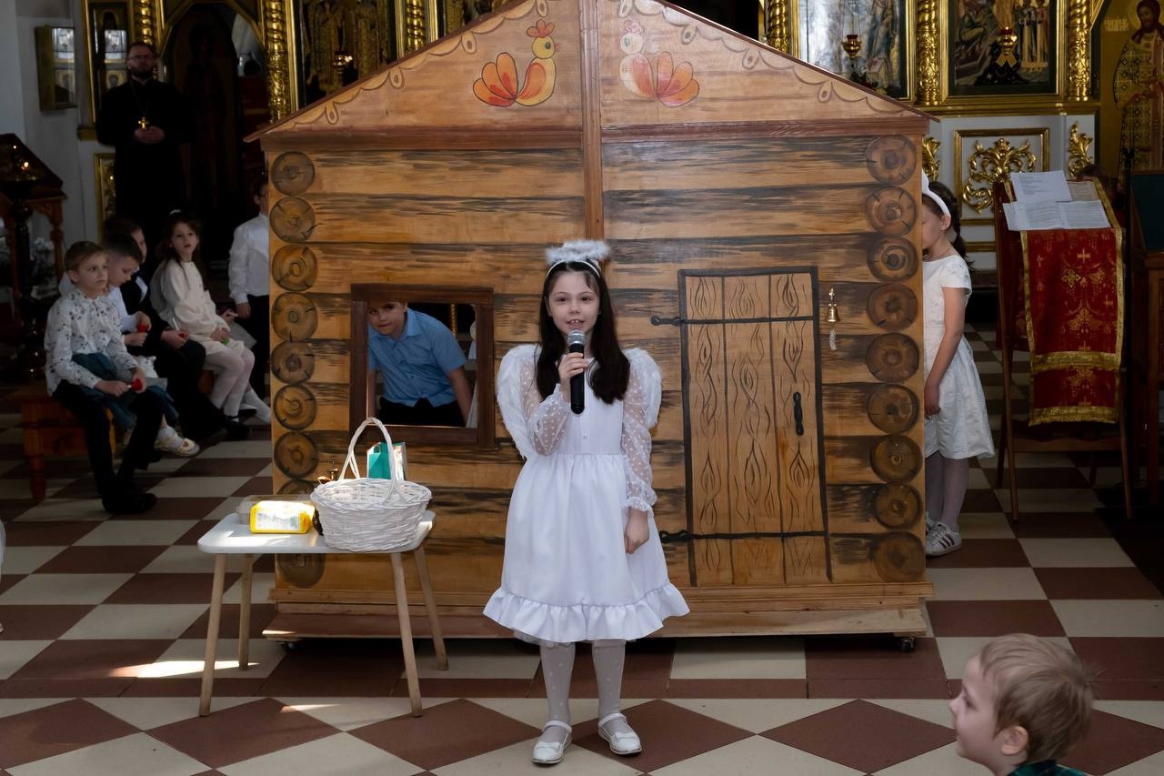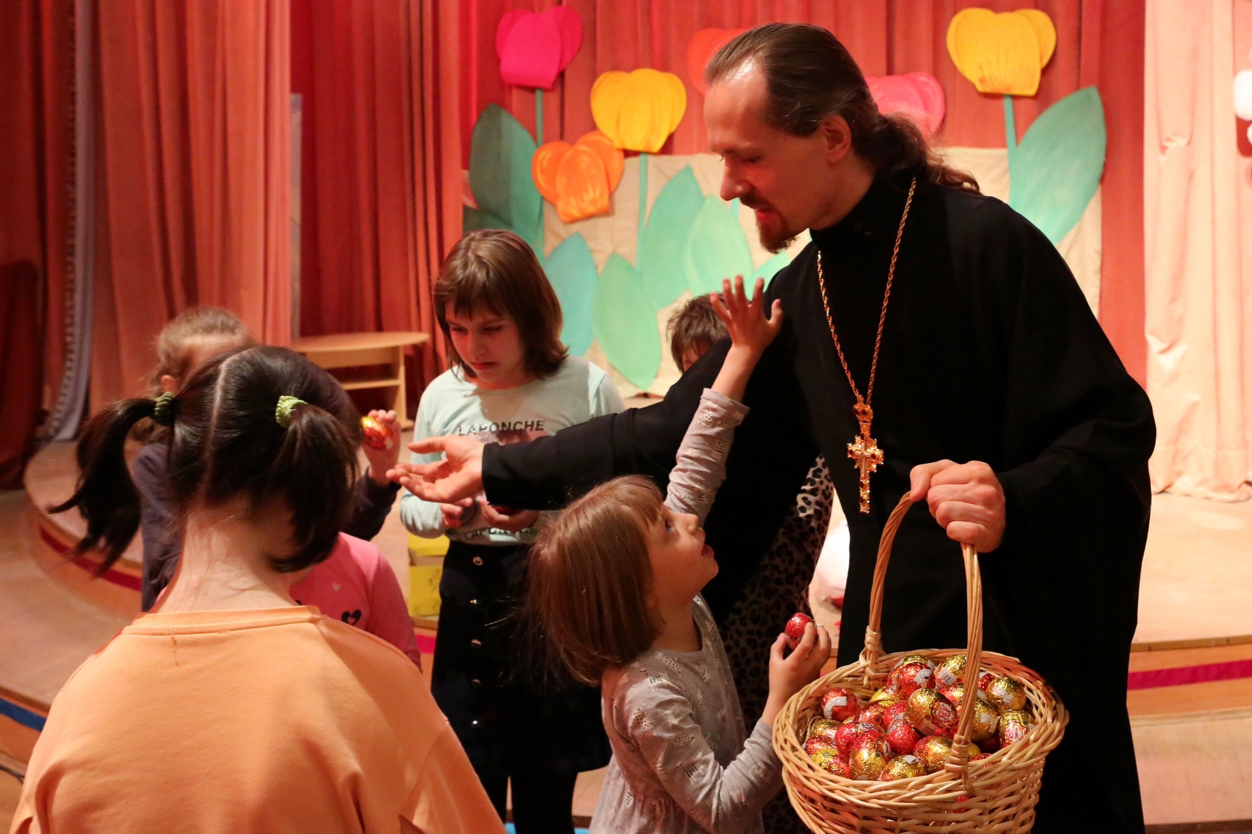 Затем по приглашению иерея Иоанна для ребят с пасхальным представлением выступили студенты Высшего театрального училища (института) имени М. С. Щепкина. По окончании спектакля все дети получили шоколадные яйца, а также было организовано традиционное «катание яиц» с многочисленными подарками.