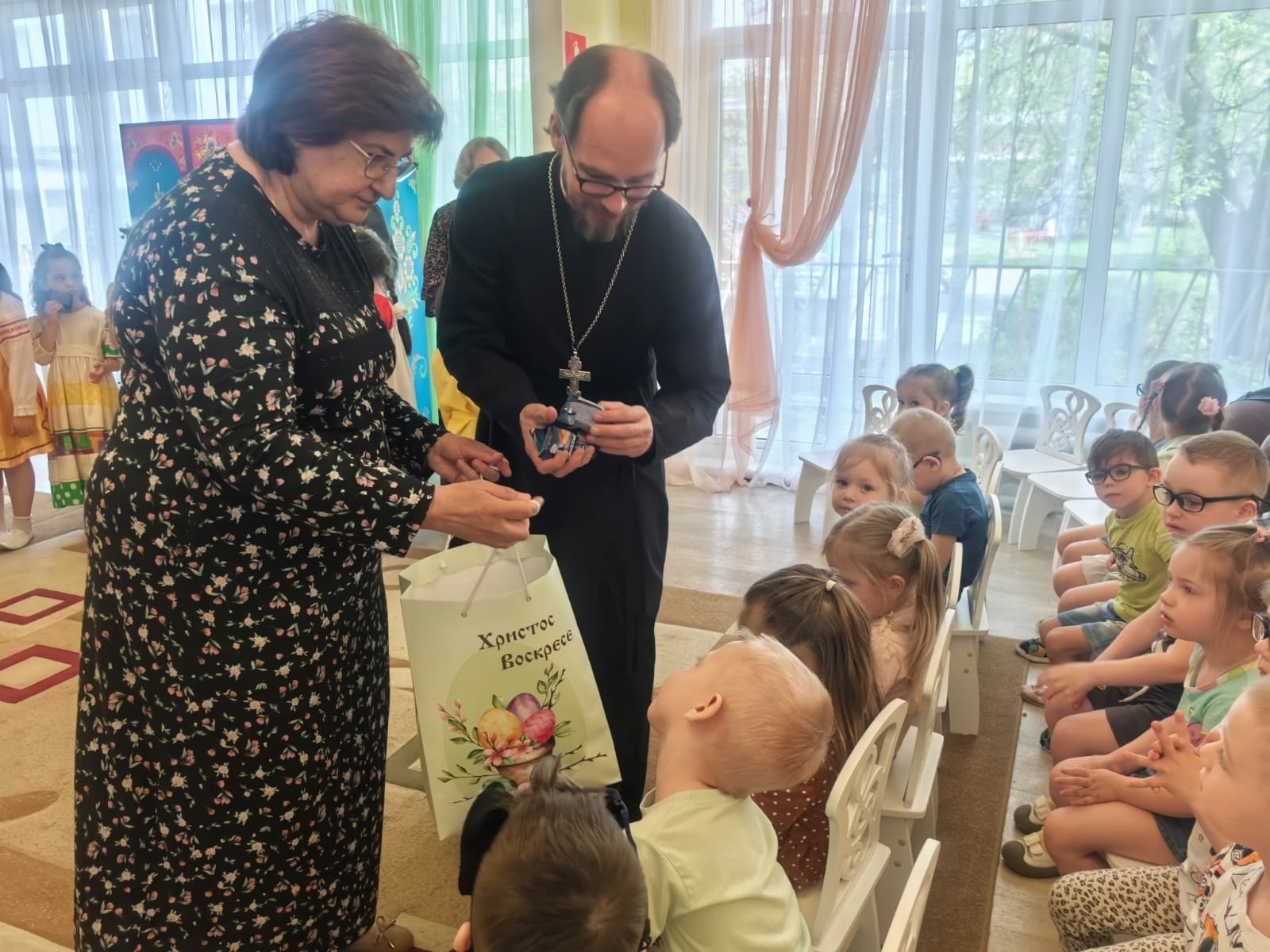 24 апреля 2025 г. клирик Успенского кафедрального собора иерей Михаил Казыханов посетил Пасхальный праздник в детском саду "Солнышко" при школе № 16 города Коломны. Отец Михаил поздравил детей и сотрудников детского сада с праздником Светлого Христова Воскресения.