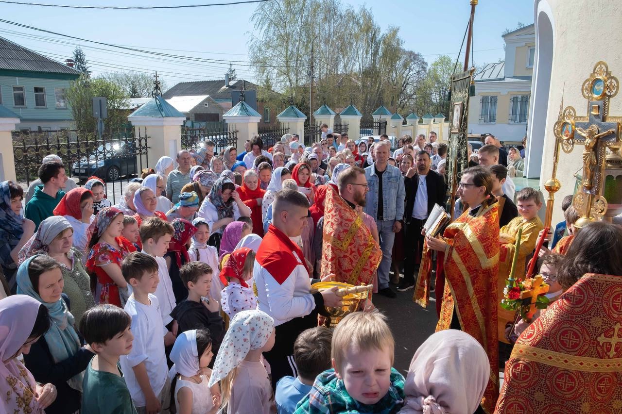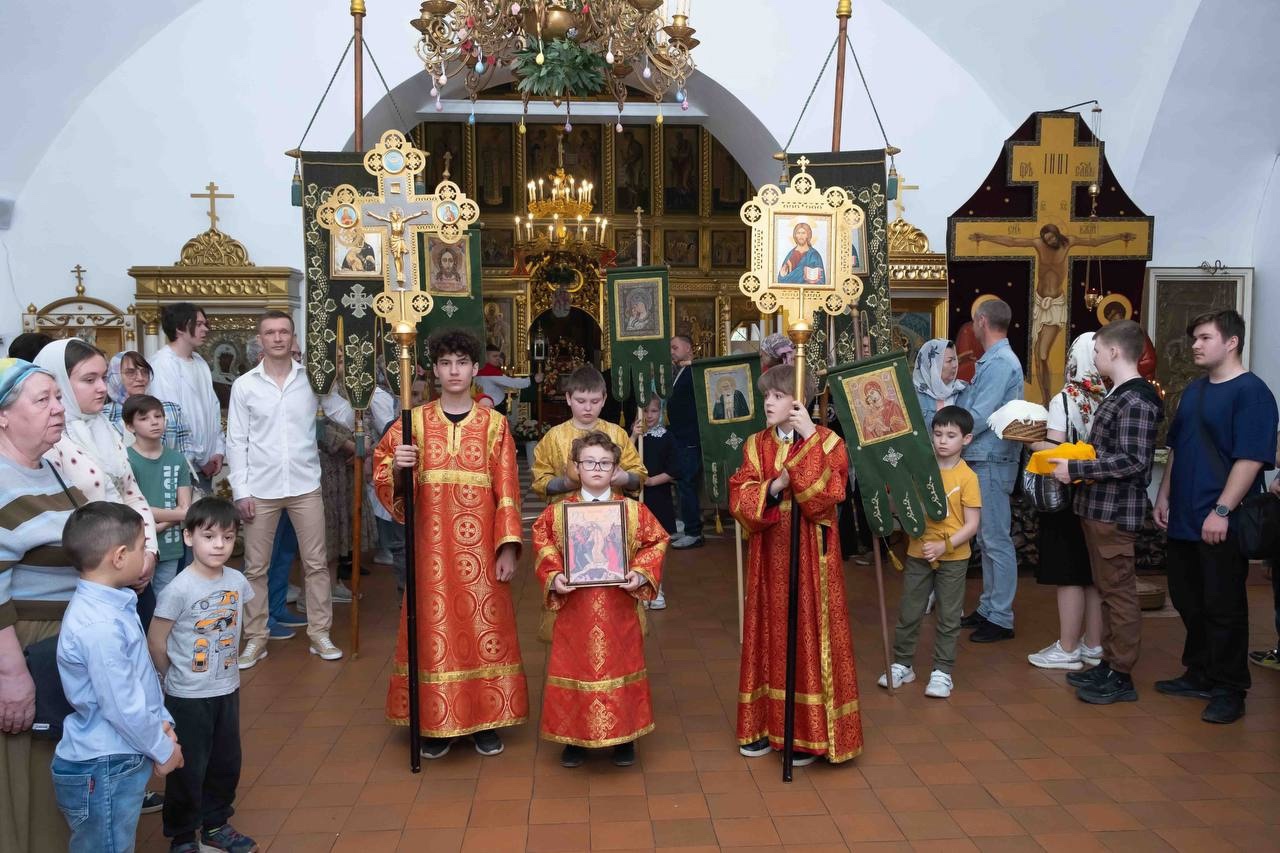 20 апреля 2025 г. в Никитском храме г. Коломна было совершено Пасхальное Богослужение: Утреня, Божественная литургия, крестный ход. После сугубой ектении была вознесена молитва о Святой Руси. После заамвонной молитвы было совершено освящение артоса. По окончании ученики воскресной школы читали стихи о Пасхе.