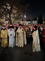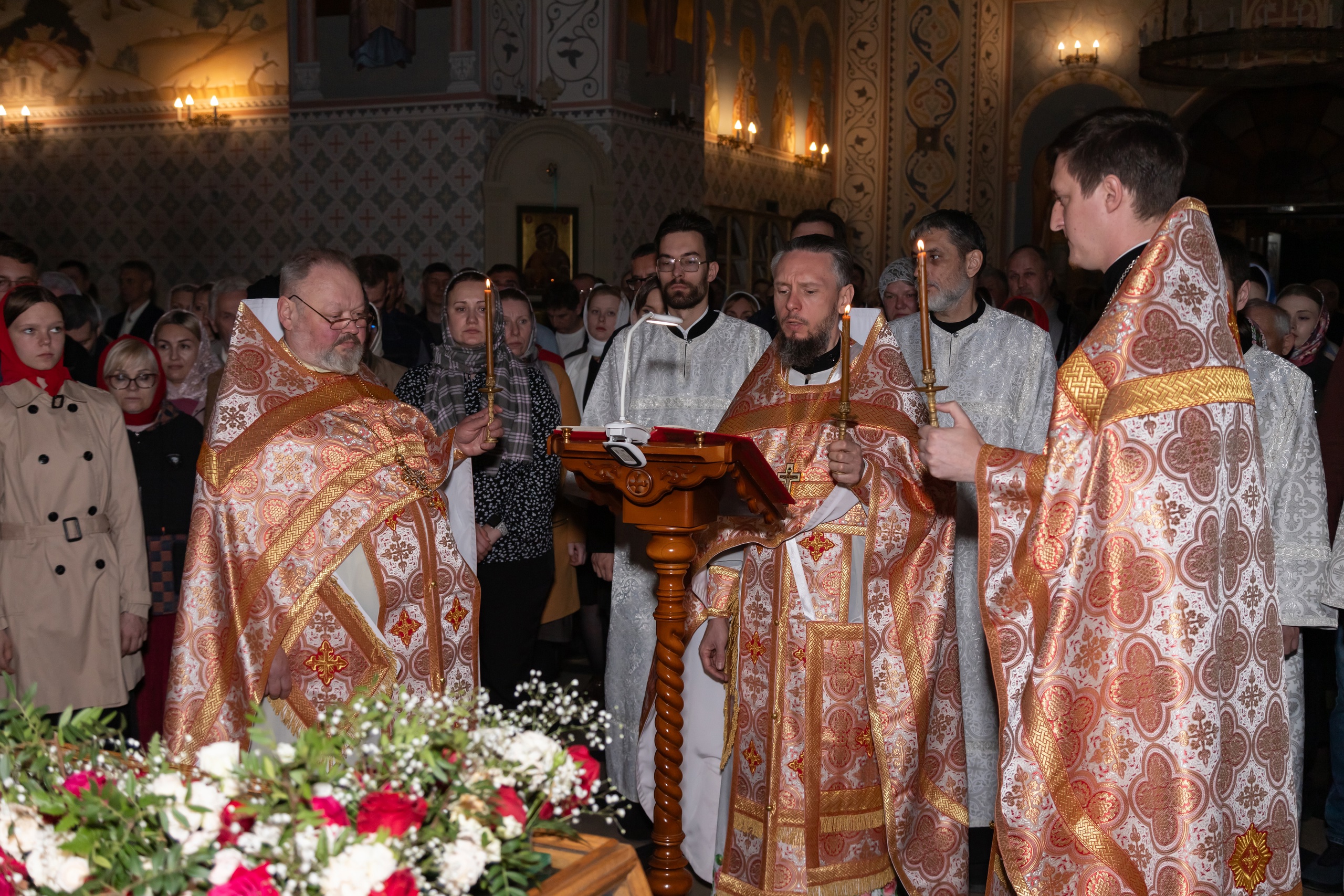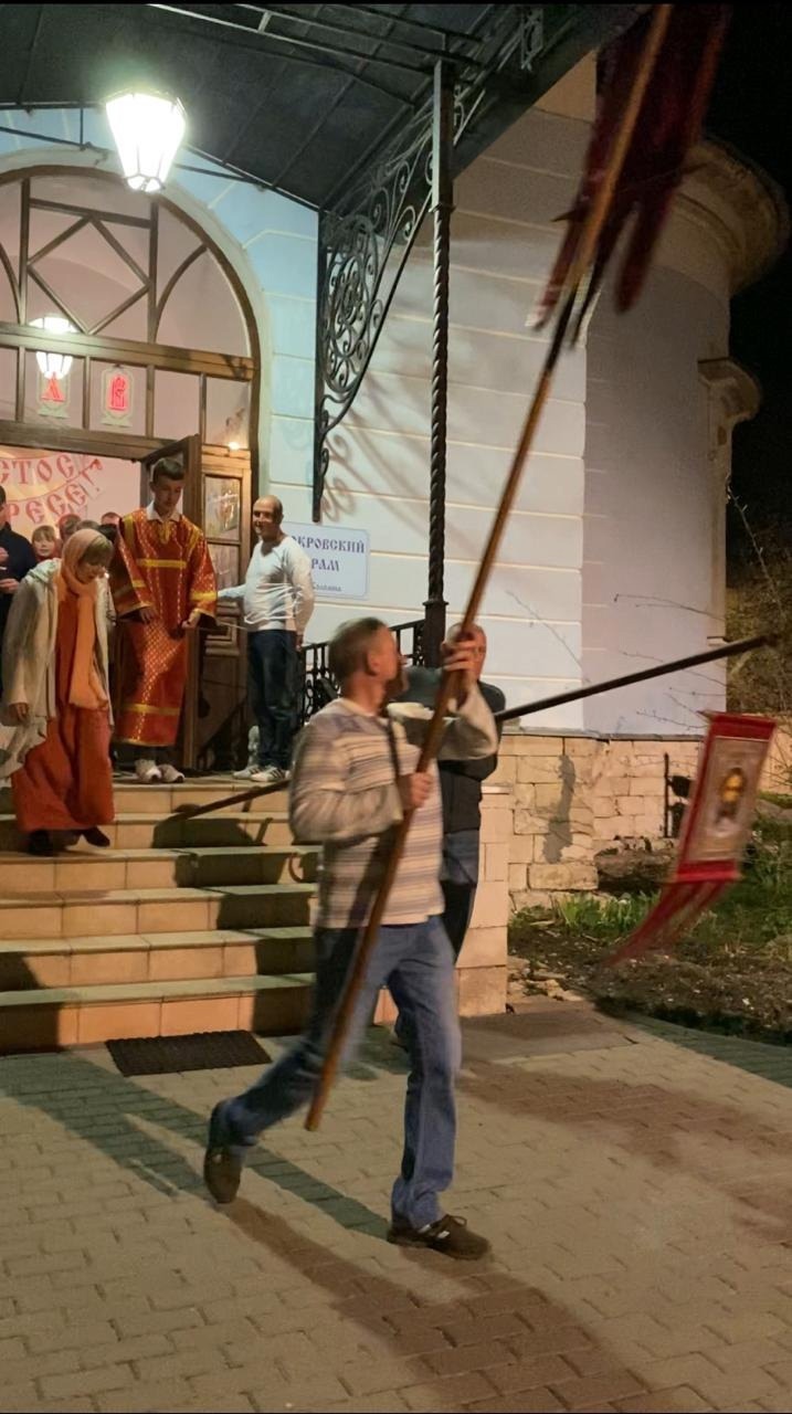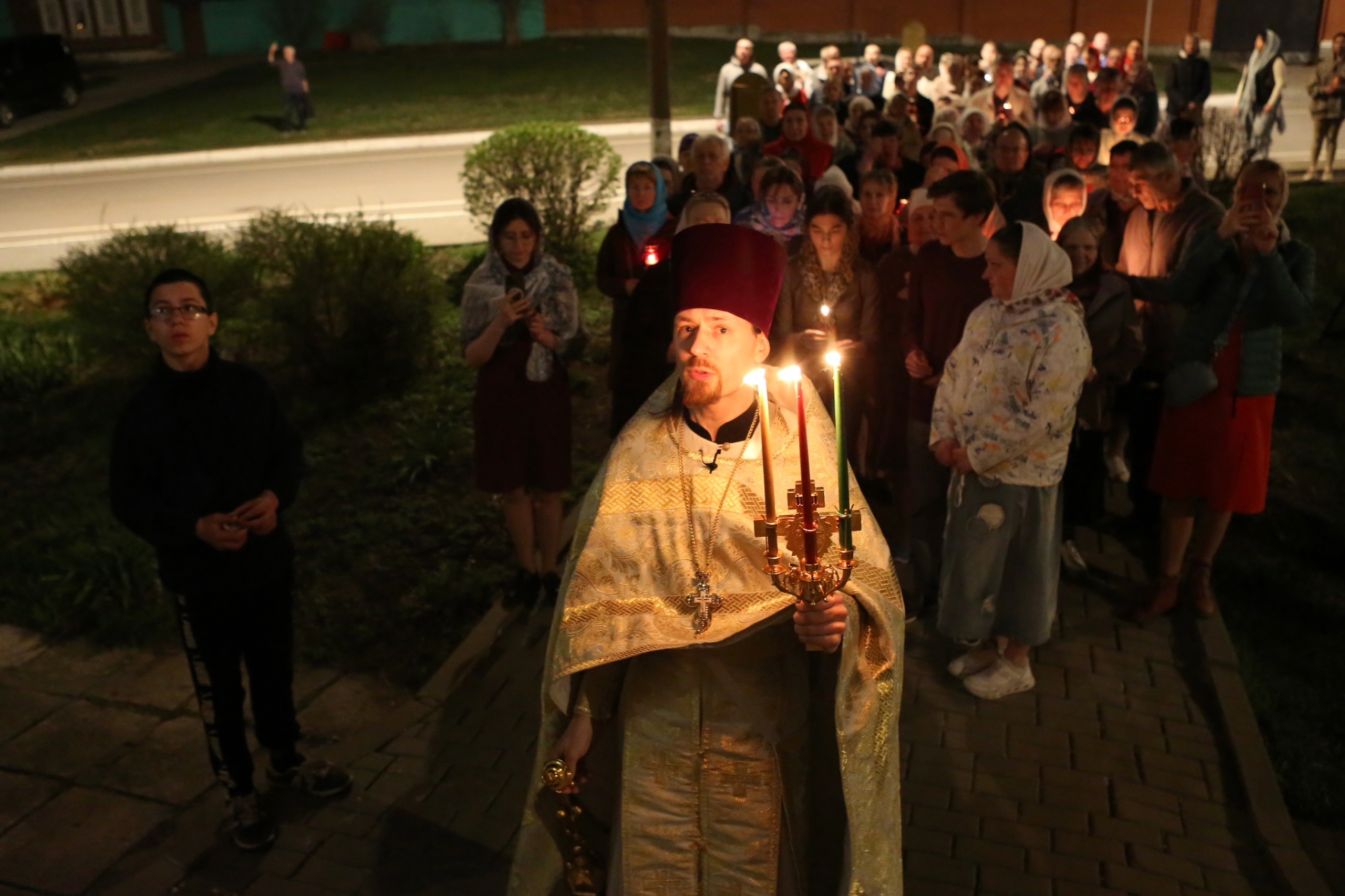 Пасхальное богослужение 19 апреля 2025 года в храме Вознесения г. Коломна началось с пасхальной полунощницы. Под торжественный звон колоколов настоятель храма иерей Иоанн Парфенов и алтарники с крестами, светильниками и фимиамом вышли из алтаря и вместе с народом, со свечами обошли вокруг храма. После заамвонной молитвы настоятель освятил артосы, а по окончании богослужения обратился ко всем собравшимся со словами пасхального приветствия и проповедью.