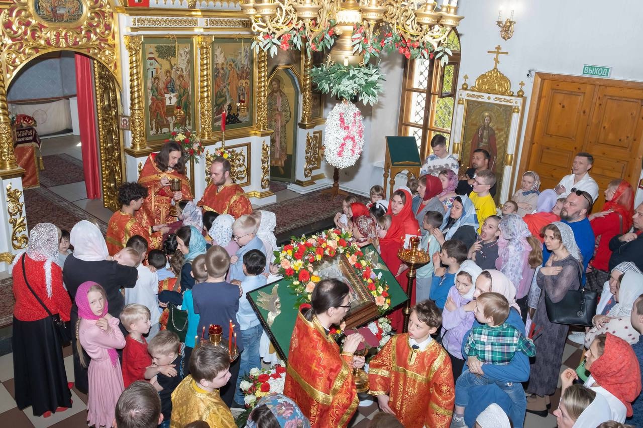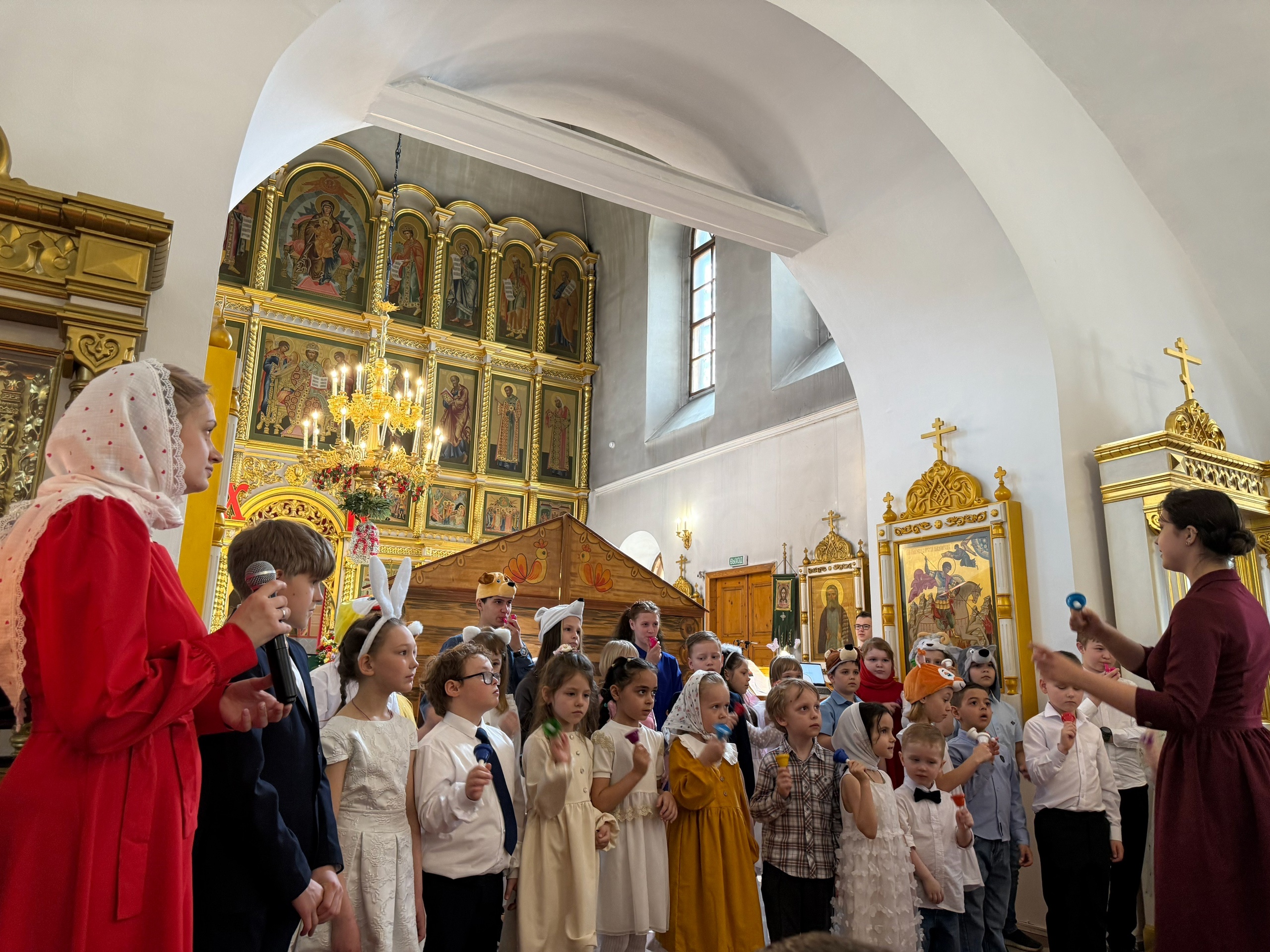 20 апреля 2025 года, Светлое Христово Воскресение, Пасха Господня, в Троицком храме на Репне г. Коломны по окончании поздней Божественной литургии воспитанники Воскресной школы выступили с театрализованной постановкой и исполнили пасхальные песнопения. После выступления настоятель храма иерей Василий Нелидкин обратился ко всем присутствующим с поздравительным словом, затем всем детям были вручены сладкие подарки и организовано чаепитие. По окончании трапезы дети участвовали в традиционном праздничном катании пасхальных яиц, после чего поднялись на колокольню храма и совершили пасхальный звон.