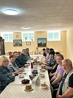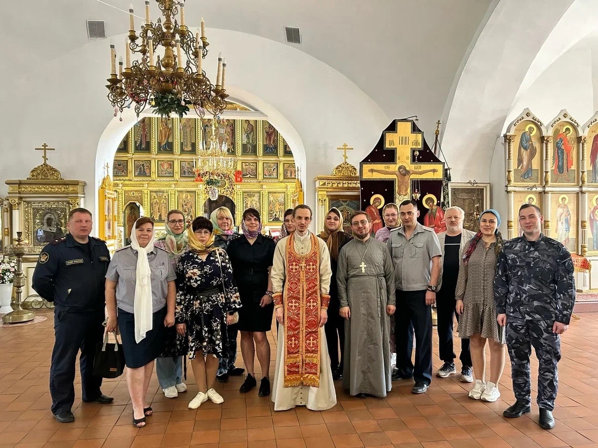 23 апреля 2025 года, в среду Светлой седмицы, приход Троицкого храма на Репне г. Коломна посетили сотрудники ФКУ СИЗО-6 г. Коломна. В храме сотрудников исправительного учреждения встретили: председатель Епархиального отдела по тюремному служению иерей Александр Державич и клирик Троицкого храма на Репне г. Коломна и помощник начальника СИЗО-6 по работе с верующими иерей Роман Брагин. В храме было совершено молебное пение, после чего священнослужители обратились к гостям с проповедью и поздравили всех со светлым праздником Христова Воскресения. По окончании молебна иерей Роман Брагин провёл для сотрудников учреждения экскурсию по храму, а затем все желающие совершили Пасхальный звон в колокола. После чего в здании воскресной школы при Троцком храме на Репне для гостей была организована трапеза, на которой отец Роман пообщался с сотрудниками СИЗО-6 на духовные темы и ответил на интересующие их вопросы.