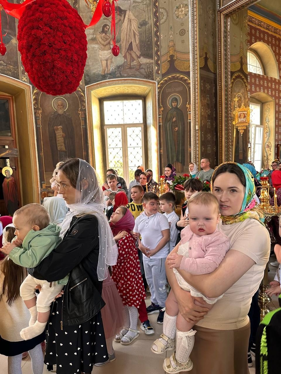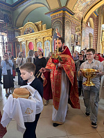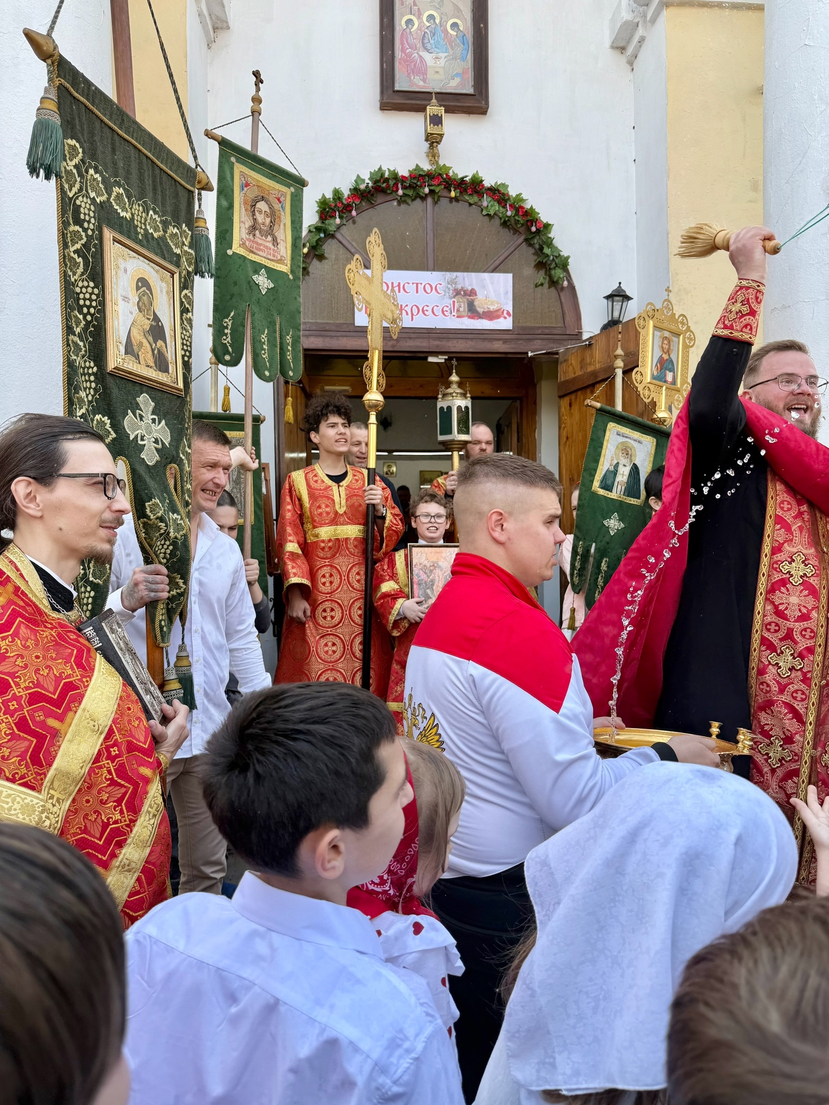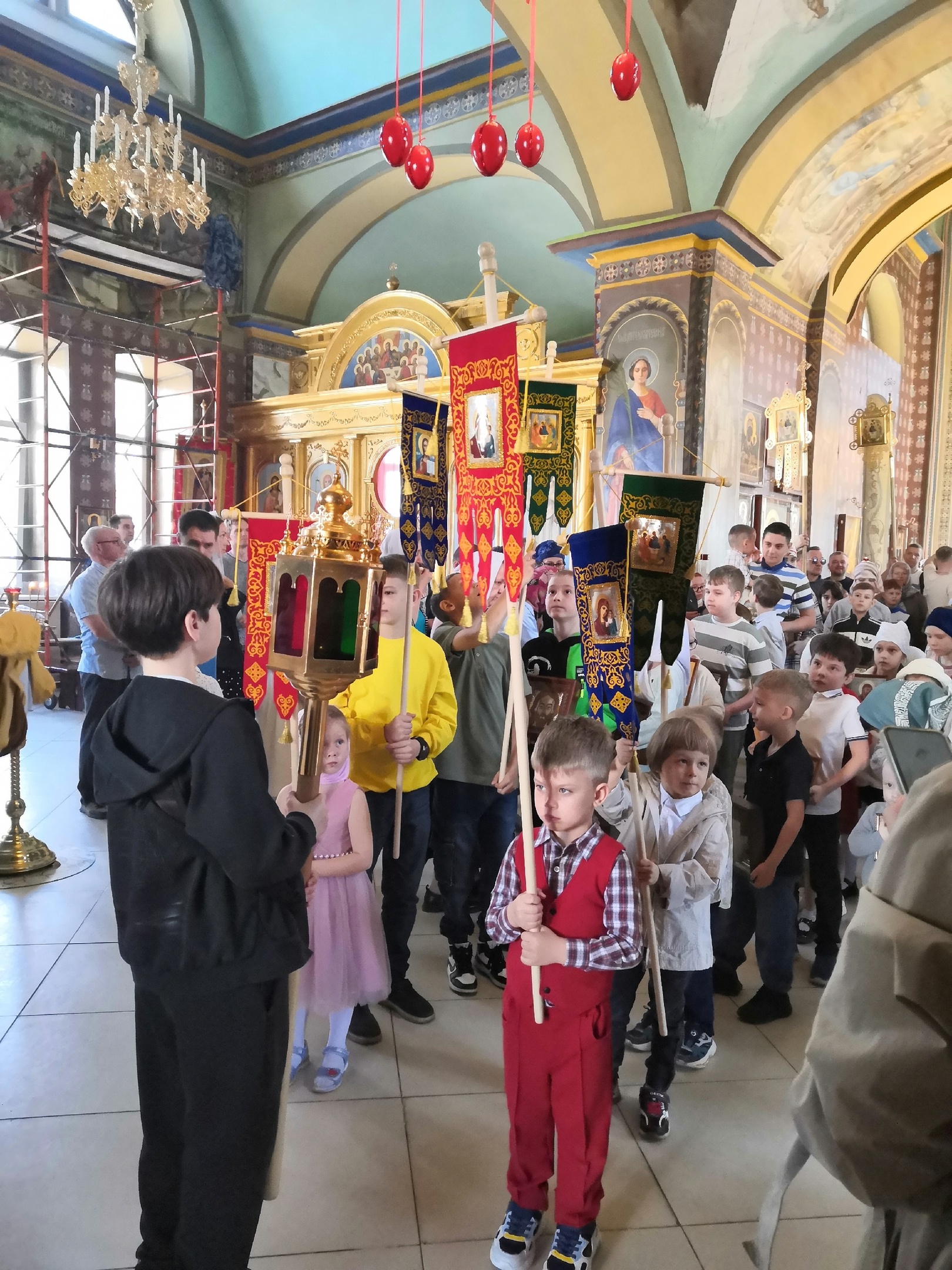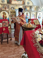 20 апреля 2025 года в Крестовоздвиженском храме была совершена Обедница и крестный ход, чаепитие с пасхальными угощениями и выступление воскресной школы, традиционное катание яиц с подарками.