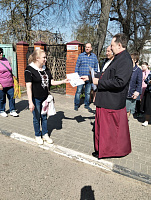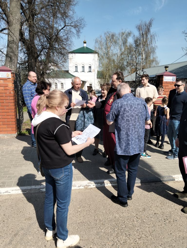 После Пасхального Богослужения прихожане Никитского храма г. Коломна приняли участие в миссионерской акции Пасхальный диалог на улице Посадской. Прихожане вместе с батюшкой беседовали с прохожими, дарили им буклеты, посвященные Празднику.