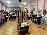 22 апреля 2025 года председатель Отдела по миссионерской работе и делам молодёжи Коломенской епархии, настоятель Крестовоздвиженского храма г. Коломна иерей Иоанн Бакушкин поздравил с Пасхой 200 детей-сирот с психоневрологическими заболеваниями, проживающими в ГАСУСО МО «Добрый дом «Коломенский». Утром иерей Иоанн Причастил детей в комнатах и поздравил тех, кто по состоянию здоровья не может участвовать в празднике. А также поздравил проживающих в корпусах пожилых инвалидов и вручил миссионерскую литературу сотрудникам.
