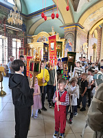 Утром 20 апреля 2025 г. Детская Пасхальная обедница состоялась в храме Вознесения г. Коломна с участием детей и взрослых, которые не имели возможности прийти на ночную Литургию. Богослужение совершил настоятель храма иерей Иоанн Парфенов. В завершение богослужения все молящиеся были приглашены на детский крестный ход.