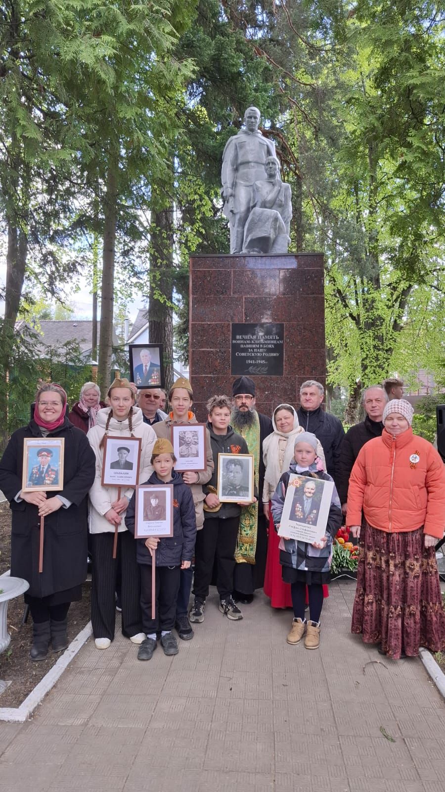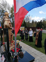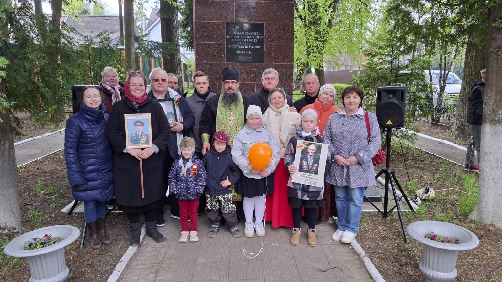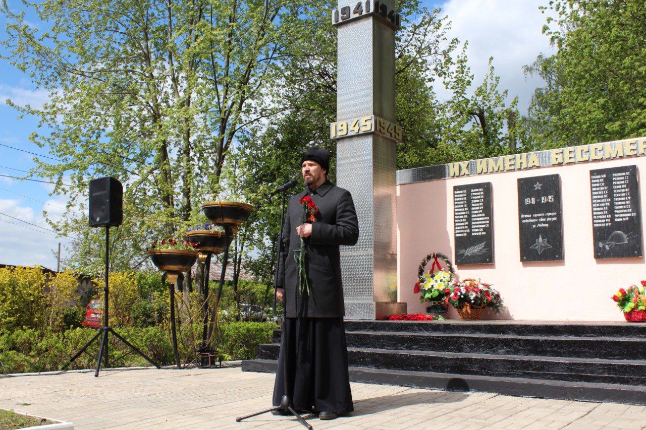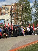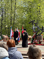 9 мая в г. Пушкино микрорайона Клязьма игумен Сергий (Амуницин) совершил литию у памятника погибшим воинам и обратился со словом ко всем присутствующим.