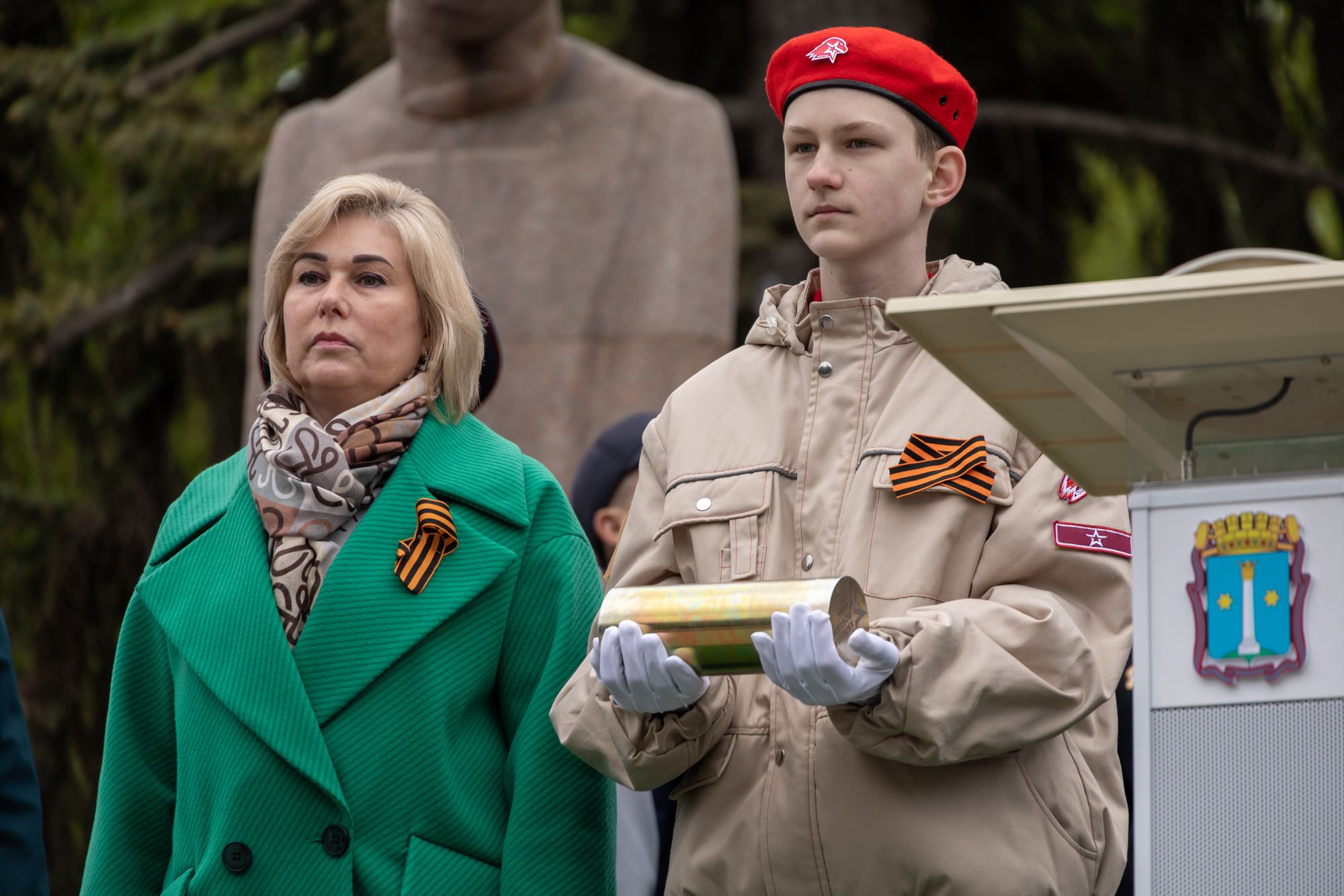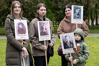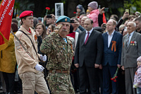 Все собравшиеся минутой молчания почтили память всех, кто отдал свои жизни за Родину, после чего состоялась церемония возложения венков и цветов к памятнику Победы.