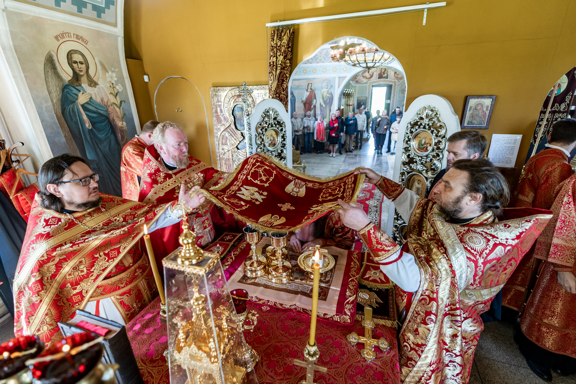 Его Высокопреосвященству сослужили благочинный Серпуховского церковного округа иерей Дионисий Коськин, настоятель храма иерей Андрей Иванов и духовенство Подольской епархии.