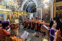 Затем владыка Николай возглавил всенародное акафистное пение перед иконой святых покровителей семьи с частицей их мощей.