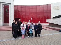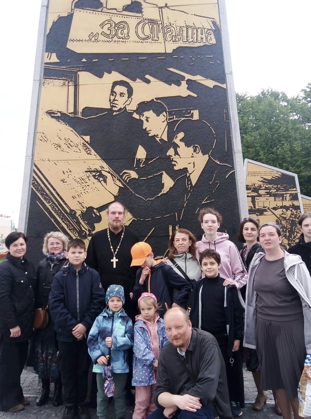 Экскурсию провела лауреат международного конкурса «Проводники смыслов. Экскурсоводы Победы» прихожанка храма В. В. Ожеледа. Группу сопровождал настоятель иерей Александр Кузнецов.