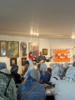После литургии прошла пасхальная викторина, посвященная евангельским событиям Воскресения Христова, где участники могли проверить свои знания. Также состоялось совместное пение прихожанами песен времен Великой Отечественной войны, что добавило особую атмосферу и напомнило о подвиге нашего народа.