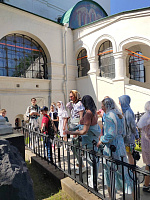 Утром паломники отправились в Новодевичий монастырь, где для них была проведена увлекательная экскурсия. После этого у пруда, расположенного рядом с монастырем, была организована трапеза. Затем паломники направились в Донской монастырь, где у всех была возможность приложиться к святым мощам святителя Тихона патриарха Всероссийского, а также пройти экскурсию по монастырю.