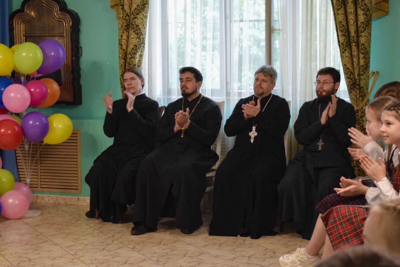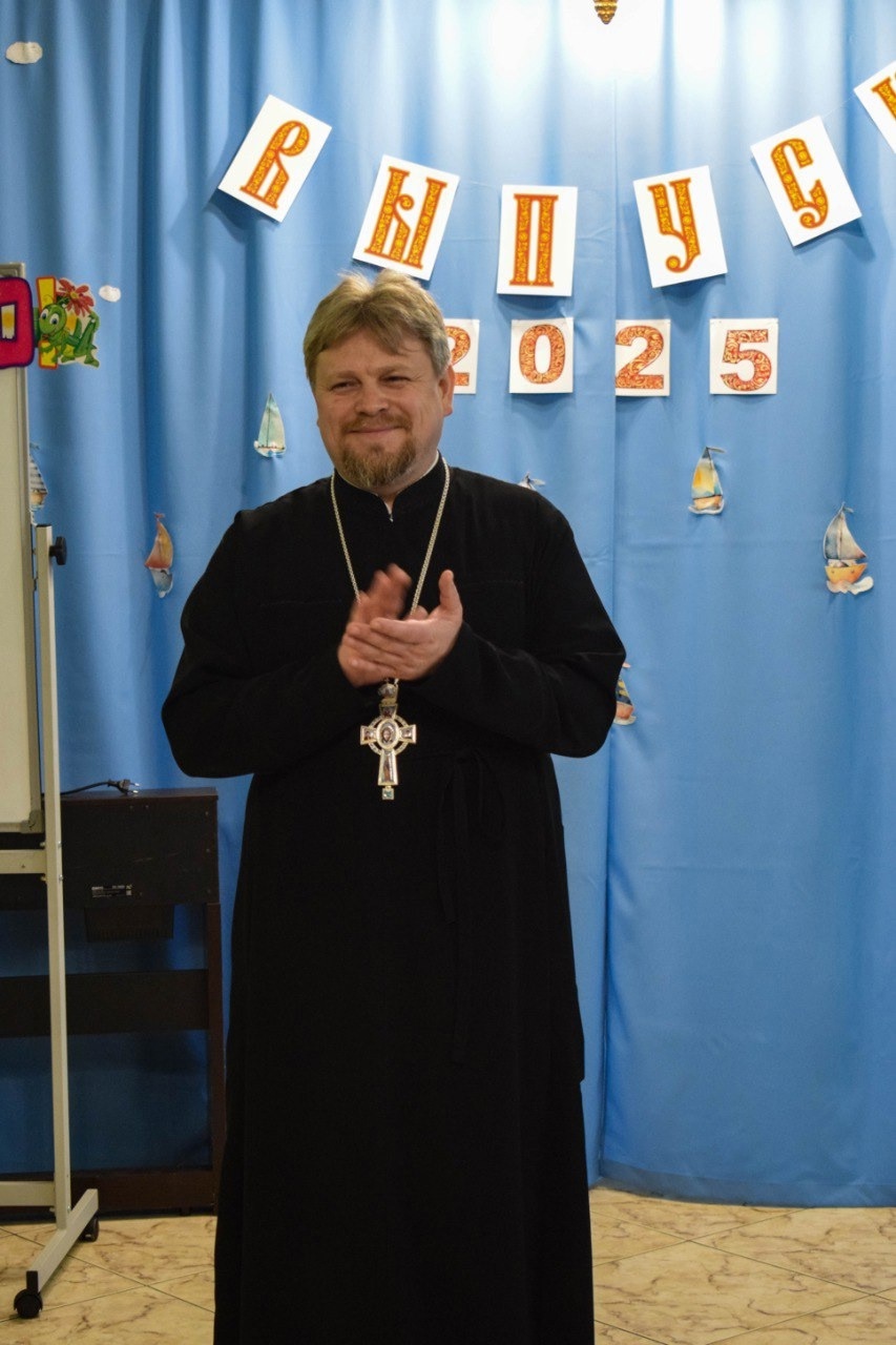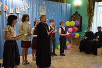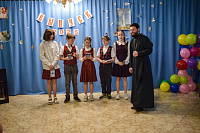 Затем духовенство, педагоги, учащиеся и их родители собрались в Серафимовском храме на торжественное мероприятие. На празднике присутствовали и представители православно-молодежного клуба "Очаг".