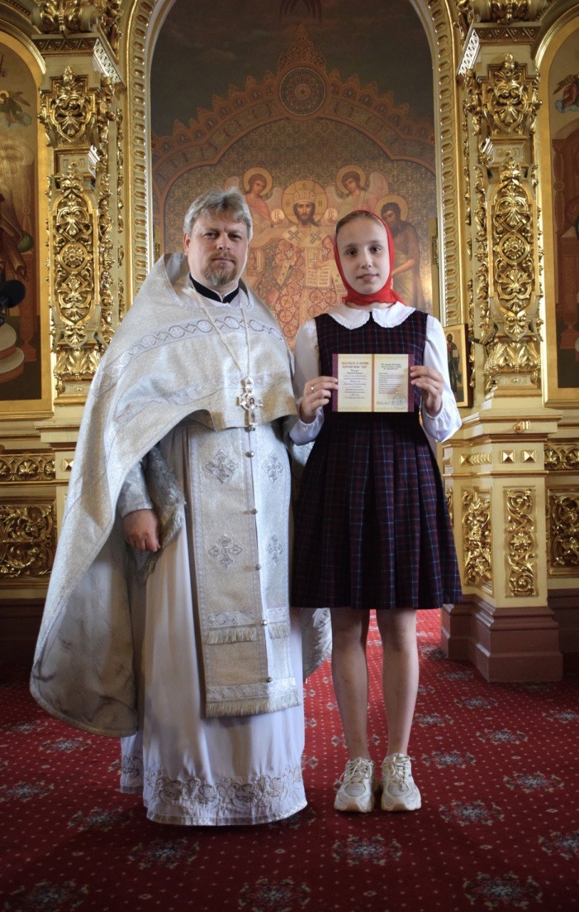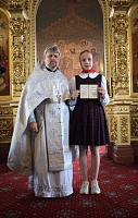 1 июня в конце Божественной литургии настоятель храма протоиерей Сергий Кожевников вручил ребятам свидетельства об окончании воскресной школы.