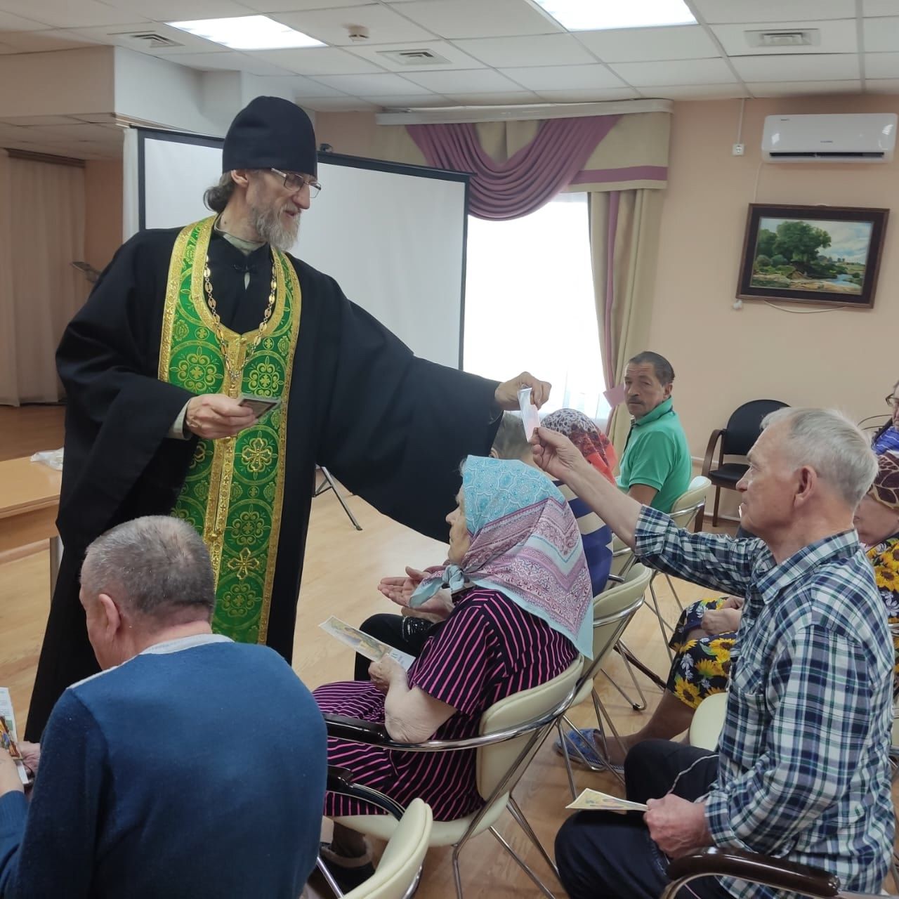 5 июня в преддверии празднования Дня Святой Троицы, Пятидесятницы, приют для престарелых в посёлке Дмитриевский "Надежда" посетил помощник благочинного по миссионерской работе иерей Николай Говоров.