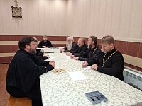 Также благочинный напомнил о том, что 28 июля в День памяти равноапостольного князя Владимира и памятной даты Дня Крещения Руси необходимо совершить особое молебное пение (по особому чину) и в 12:00 по местному времени ежегодный колокольный звон-благовест "Слава Тебе, Боже!". Обсудили планируемые мероприятия, приуроченные ко Дню памяти и скорби, а также Дню семьи, любви и верности.