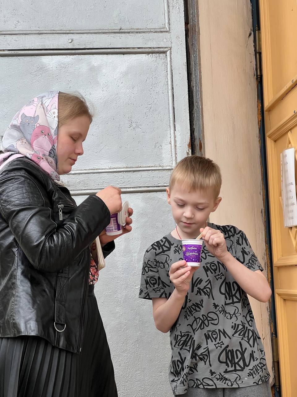 На соборной площади для прихожан и гостей престольного праздника было организовано угощение - полевая кухня, предоставленная руководителем ООО "ЗВО "Инновент" Сергеем Анатольевичем Дуениным, и мороженое для детей.