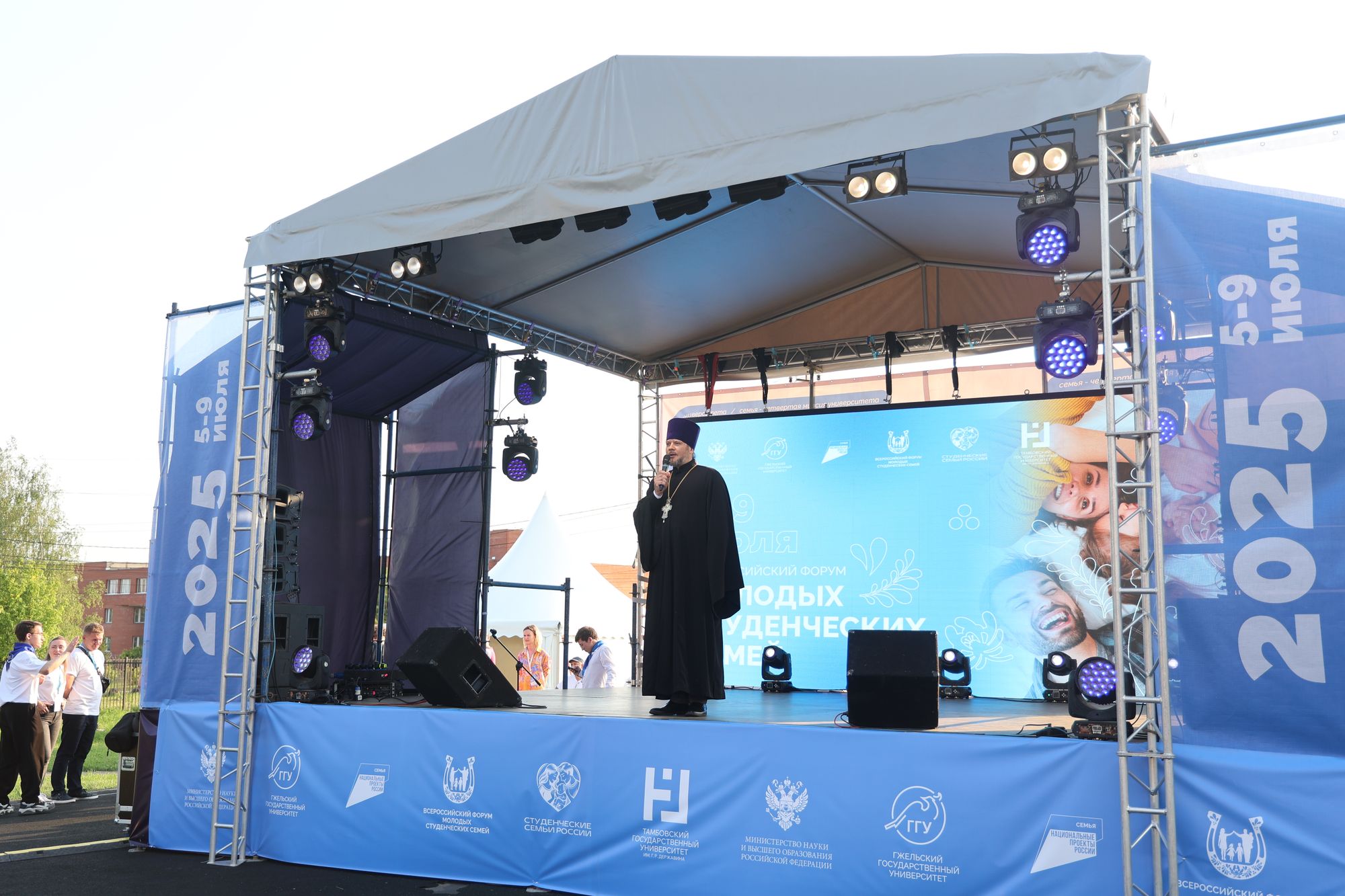 От имени Патриаршего наместника Московской митрополии, митрополита Крутицкого и Коломенского Павла обратился к участникам форума председатель Межъепархиального отдела по координации духовно-просветительской, образовательной деятельности Московской митрополии протоиерей Сергий Якимов.