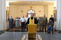 Настоятель храма протоиерей Сергий Якимов отслужил молебен и поздравил присутствующих в храме с Днём семьи, любви и верности.
