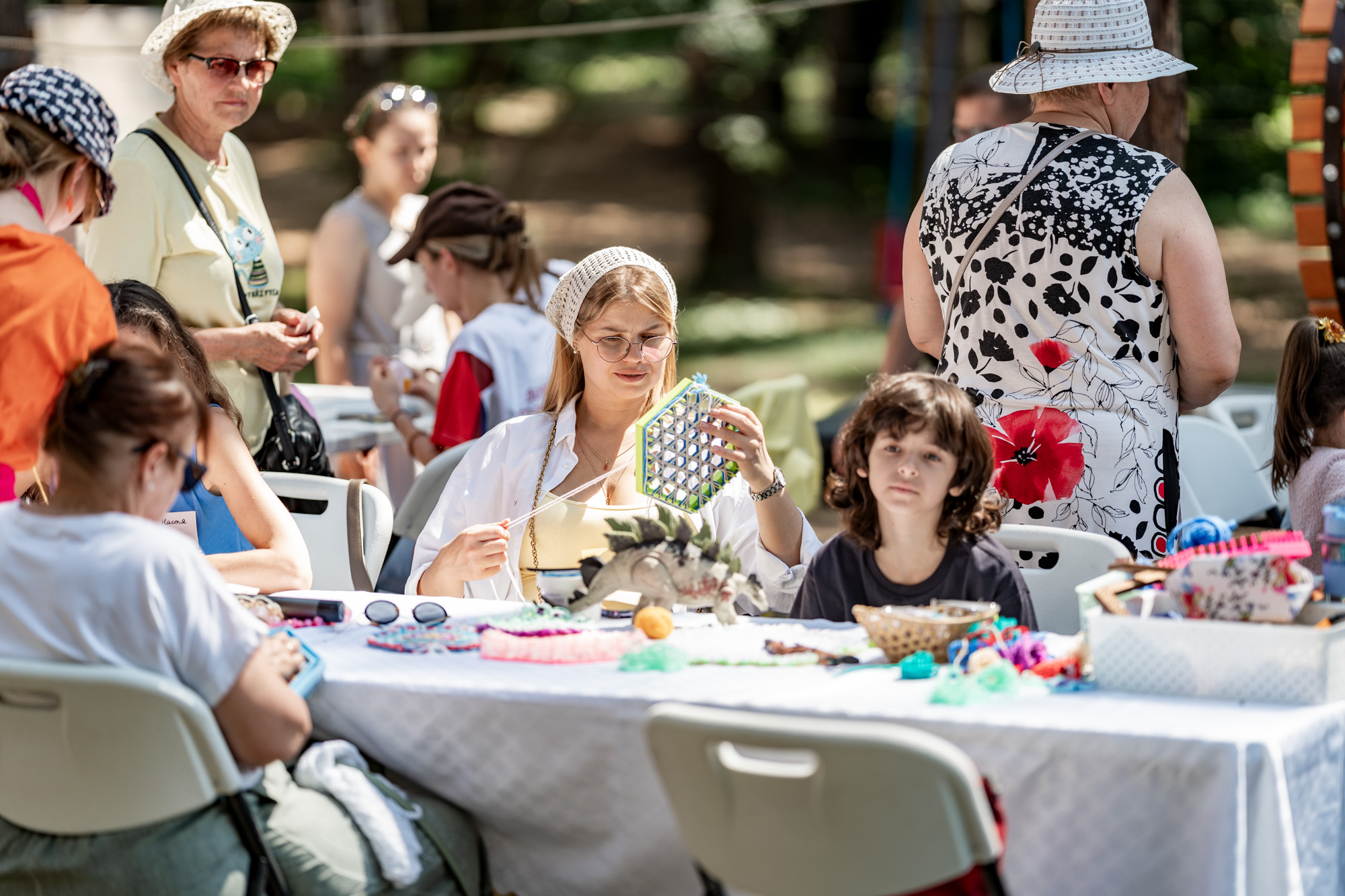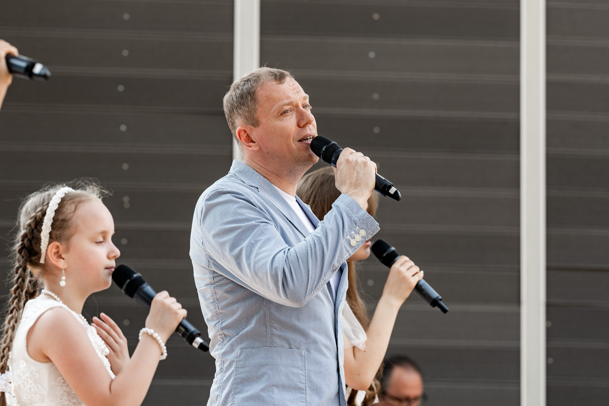 Затем для гостей мероприятия был организован праздничный концерт с участием творческих коллективов города, творческие мастер-классы и обед на полевой кухне. С творческими номерами на сцене парка также выступили настоятель храма благоверных Петра и Февронии Муромских города Домодедово иерей Антоний Киндяков и кавалер Патриаршего знака материнства II степени, супруга настоятеля Успенского храма села Липитино г.о. Ступино, регент приходского хора Татьяна Агуреева.