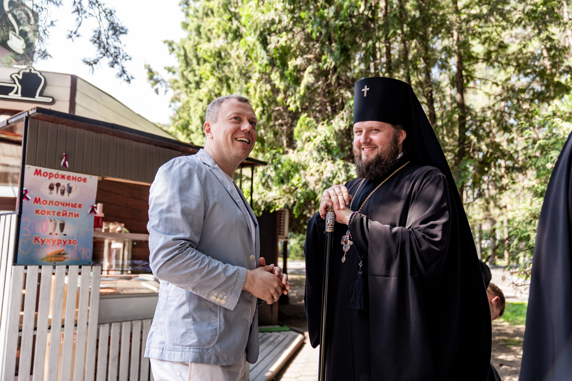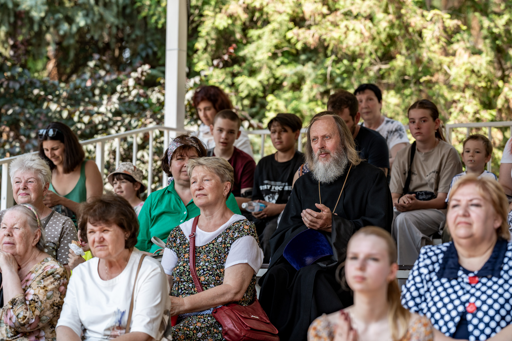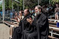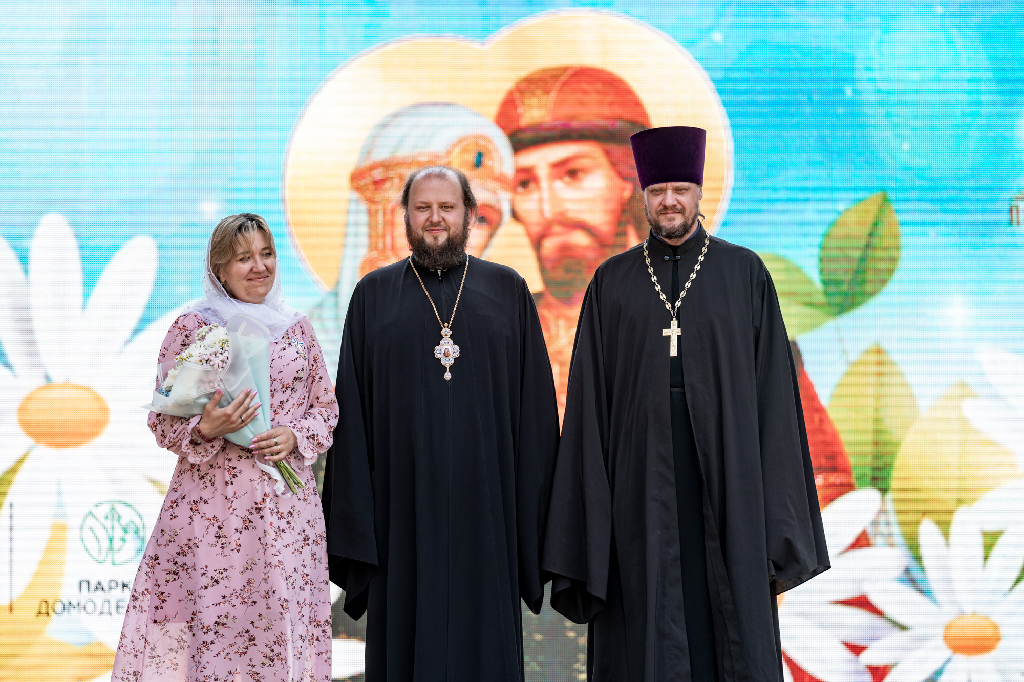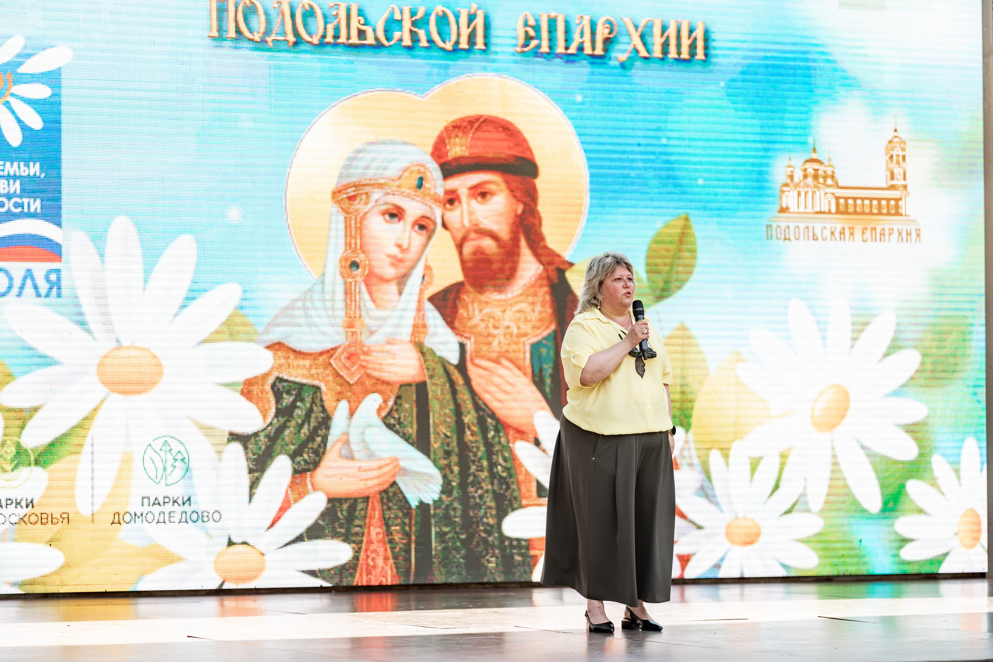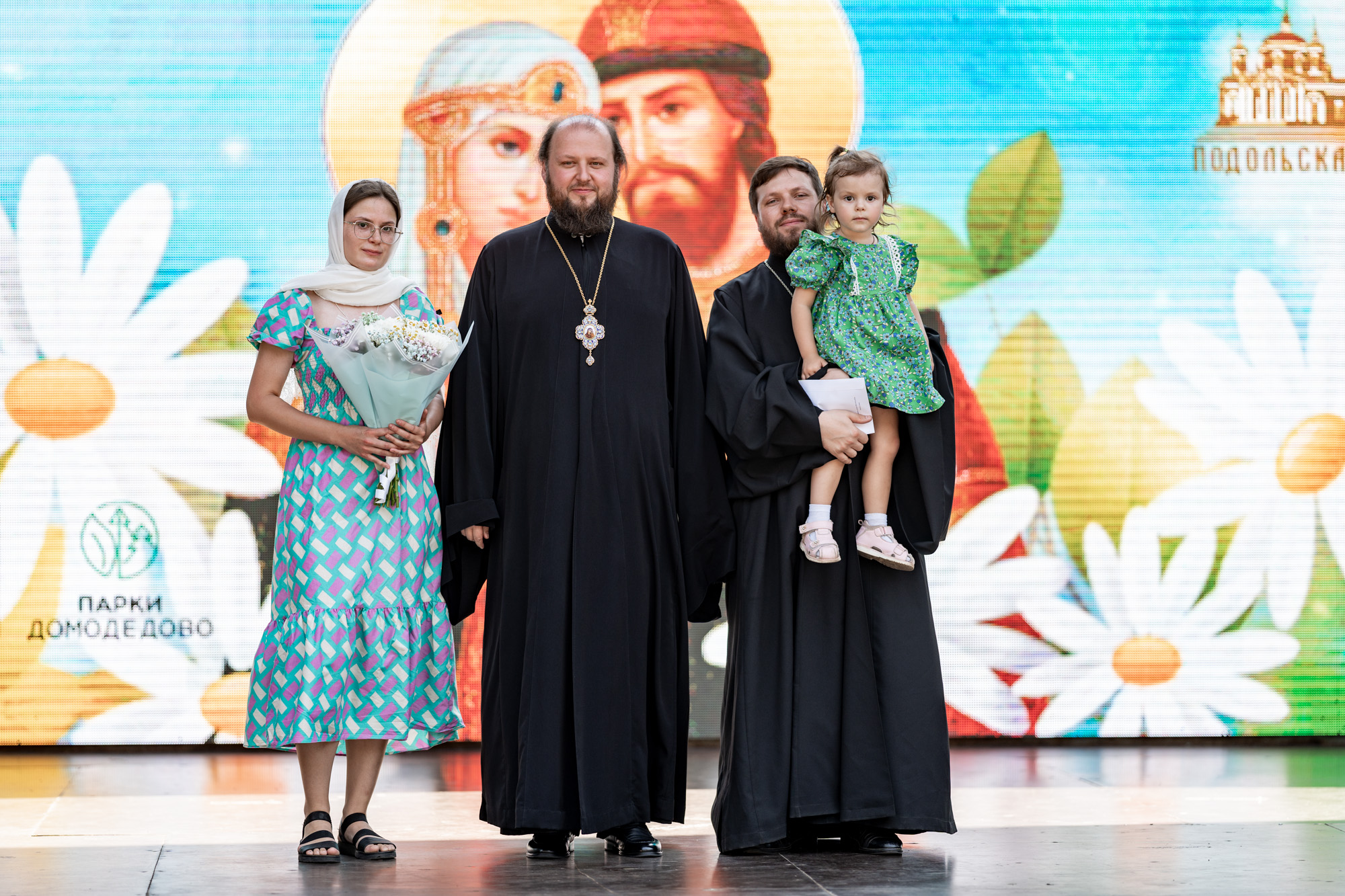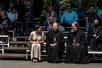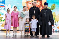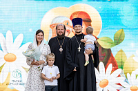 На главной сцене парка собравшихся приветствовал архиепископ Подольский и Люберецкий Аксий. Он вручил Патриарший знак материнства II степени супругам священнослужителей Подольской епархии и поздравил семьи клириков Домодедовского благочиния с рождением детей.