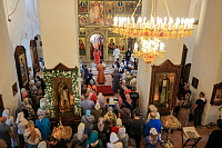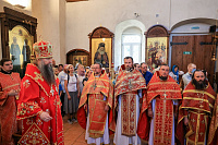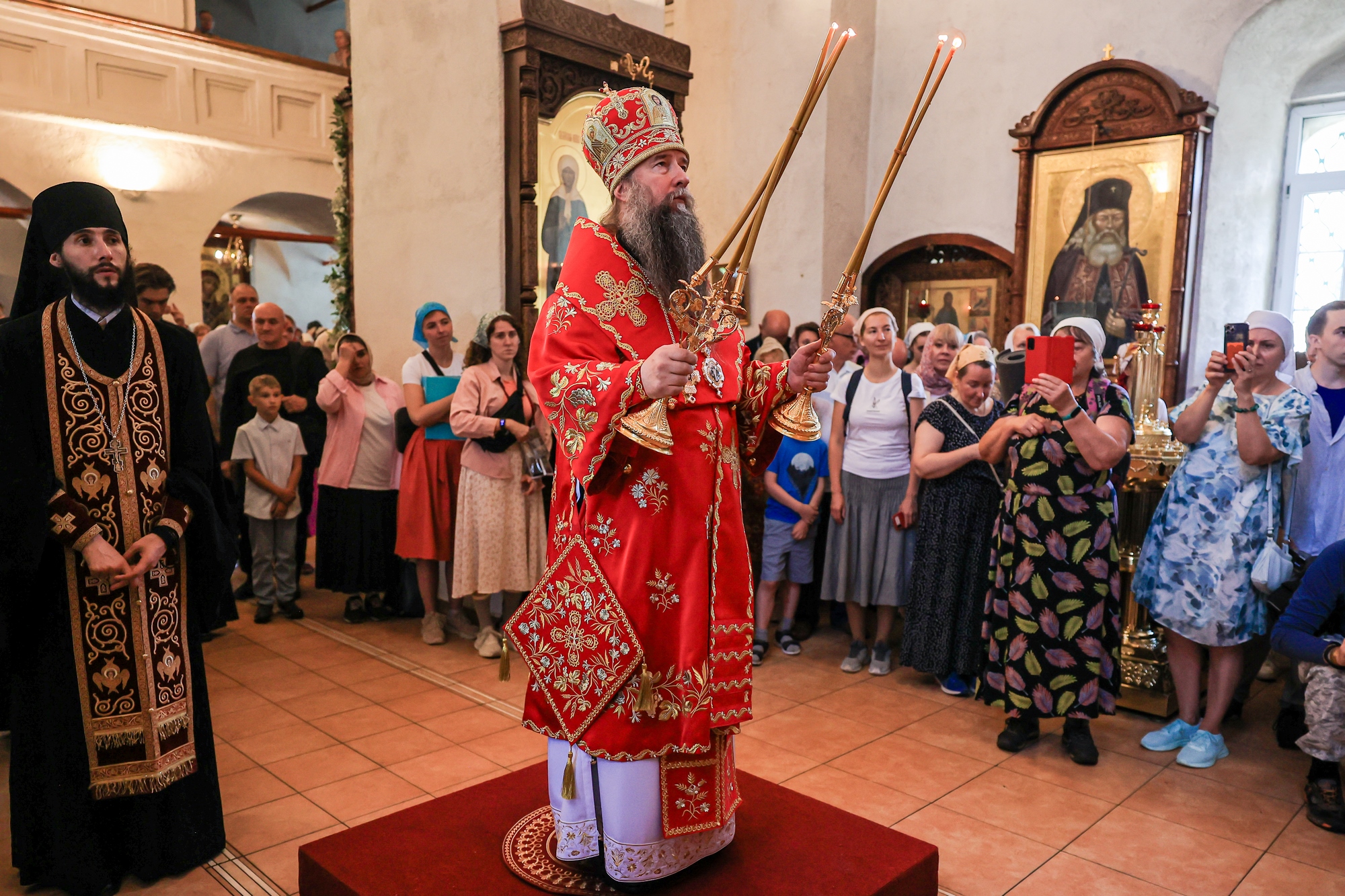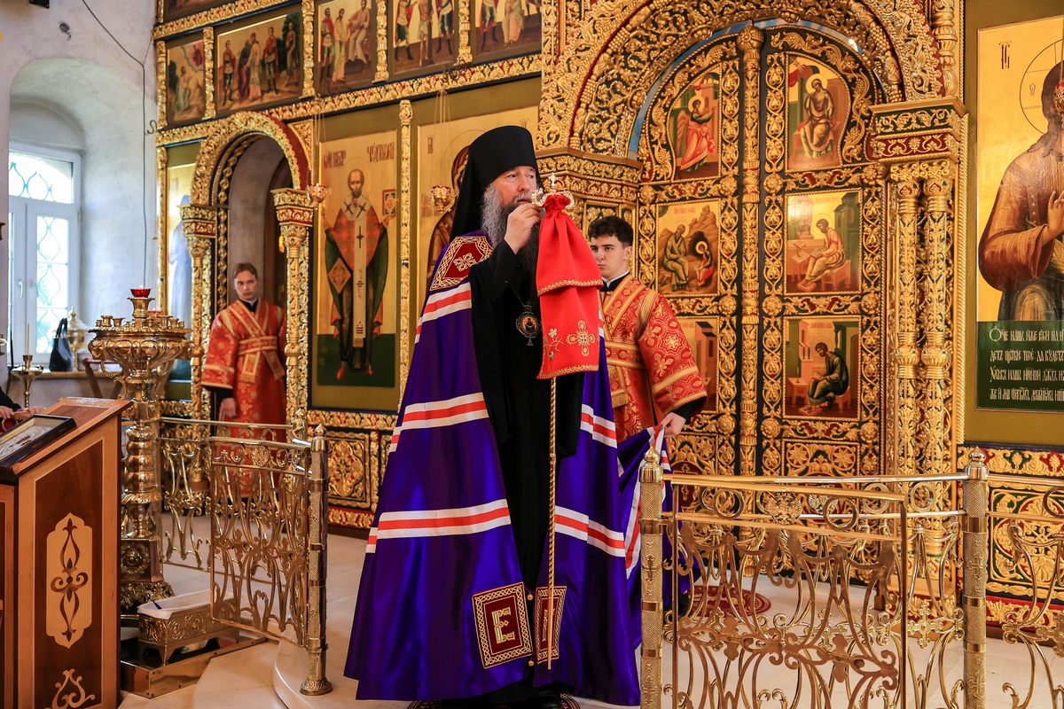 15 июля 2025 года, во вторник 6-й седмицы по Пятидесятнице, епископ Сергиево-Посадский и Дмитровский Кирилл возглавил Божественную литургию в Благовещенском храме с. Тайнинское г.о. Мытищи.