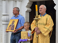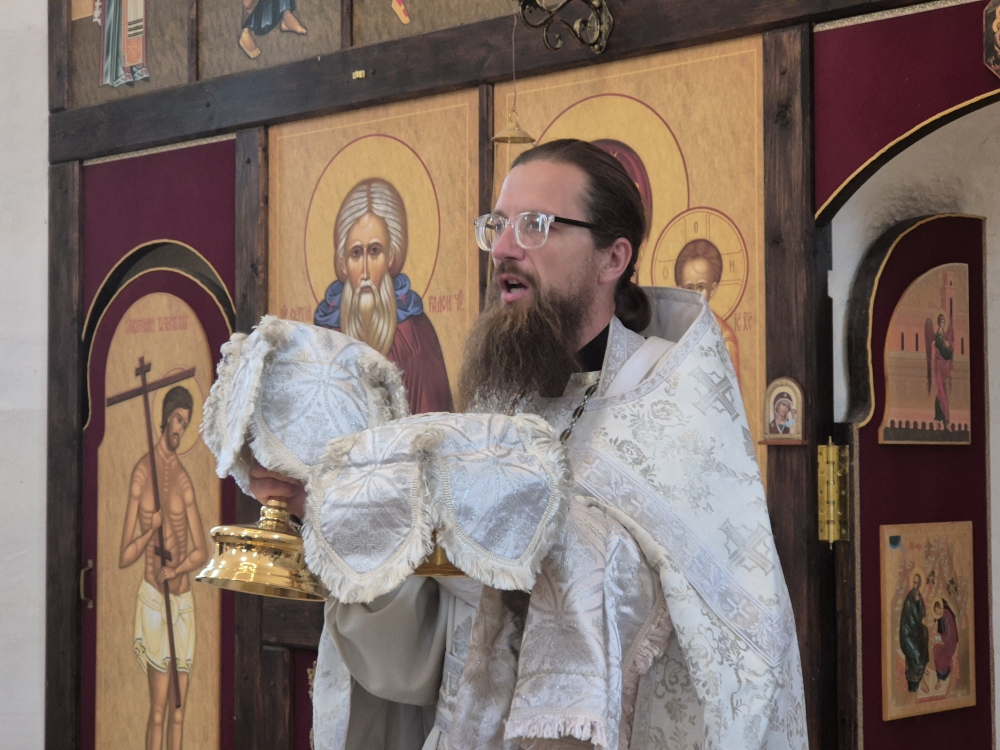 По окончании Божественной литургии и крестного хода настоятель иерей Дионисий Киндюхин обратился с пастырским словом к молящимся.