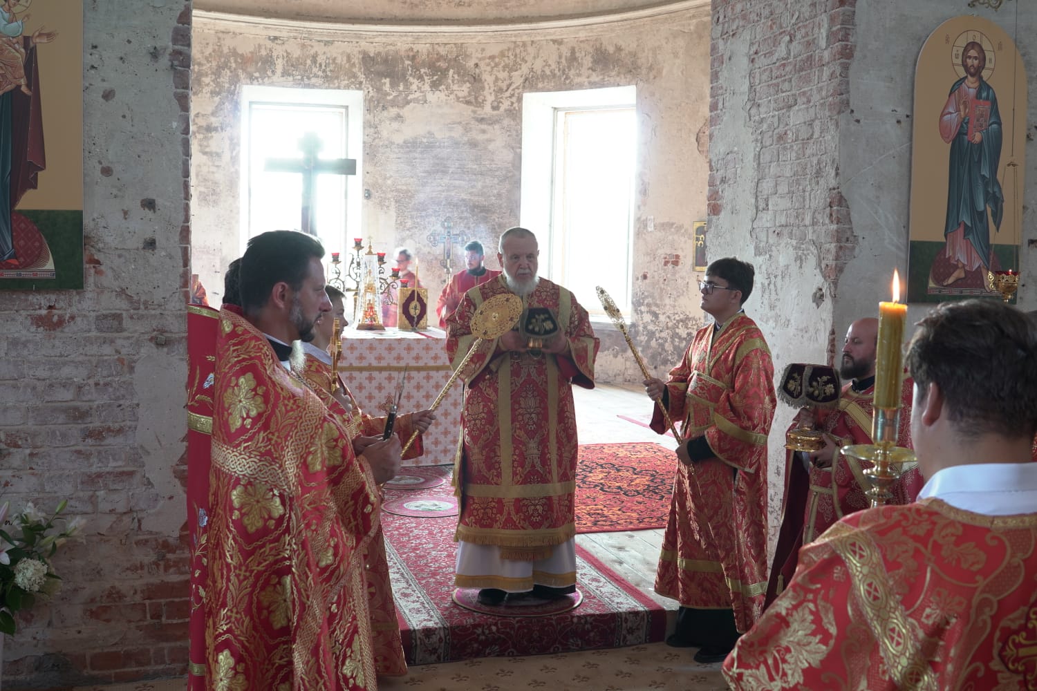 Его Преосвященству сослужили благочинный Ликино-Дулёвского церковного округа священник Антоний Рыжаков, благочинный Орехово-Зуевского церковного округа иеромонах Андрей (Коробков), благочинный 2-го Егорьевского округа Коломенской епархии священник Сергий Ершов и клирик Воскресенского храма священник Иоанн Афанасьев.