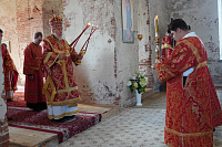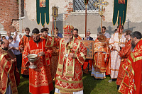 По окончании Литургии был совершен уставной крестный ход, после чего Владыка Николай поздравил духовенство и богомольцев с престольным праздником.