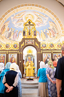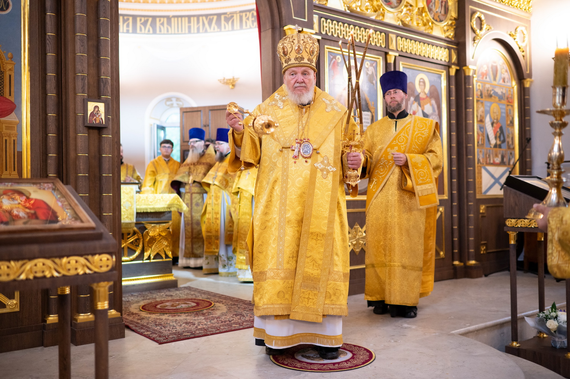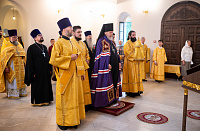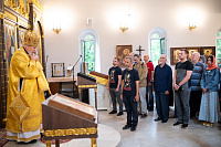 По окончании Литургии был совершён уставной крестный ход, вознесена молитва святому праведному воину Феодору и возглашены уставные многолетия, после чего отец настоятель поблагодарил владыку Николая за совершённое богослужение и преподнёс ему резную икону святого праведного воина Феодора.