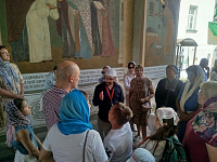 После этого паломники в сопровождении экскурсовода посетили Успенский собор, Трапезный храм, Духовской и Смоленский храмы, а также крипту под последним. В храмах коломенцы приложились к мощам преподобных Максима Грека и Антония Радонежского, святителя Иннокентия Московского, чудотворным и чтимым иконам, а также частицам мощей святых угодников Божиих. Также паломники вознесли заупокойные молитвы на могилах погребённых в лавре подвижниках благочестия: митрополита Платона (Лёвшина) и митрополита Николая (Ярушевича).