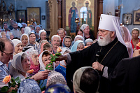 По окончании богослужения было совершено славление великомученику Пантелеимону, после чего Владыка обратился к молящимся с архипастырским словом.