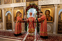 Богослужебные песнопения исполнил хор храма под управлением Константина Герасименкова.