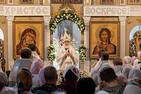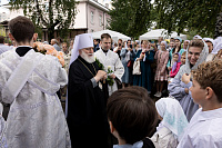 В завершение богослужения было совершено славление и освящение плодов нового урожая, после чего Владыка обратился к молящимся с архипастырским словом.