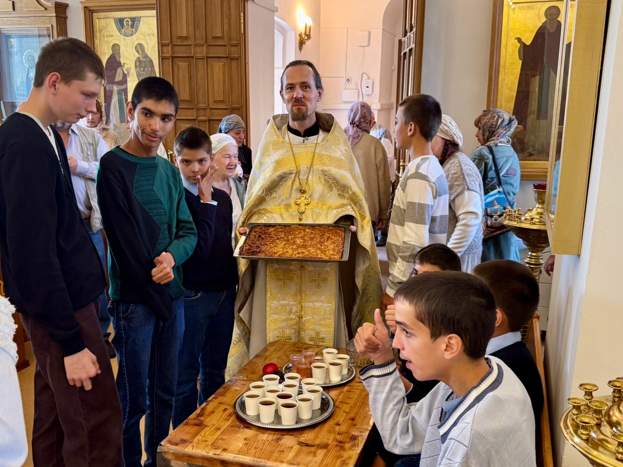 19 августа 2025 года, в праздник Преображения Господа Бога и Спаса нашего Иисуса Христа, за Божественной литургией в Крестовоздвиженском храме г. Коломна вместе с прихожанами молились дети-инвалиды, проживающие в детском доме-интернате «Добрый дом «Коломенский». По традиции по окончании Богослужения настоятель иерей Иоанн Бакушкин совершили освящение плодов. Освященные яблоки и виноград были розданы прихожанам и гостям храма. После чего состоялось чаепитие, а детям-сиротам также вручили сладкие подарки.