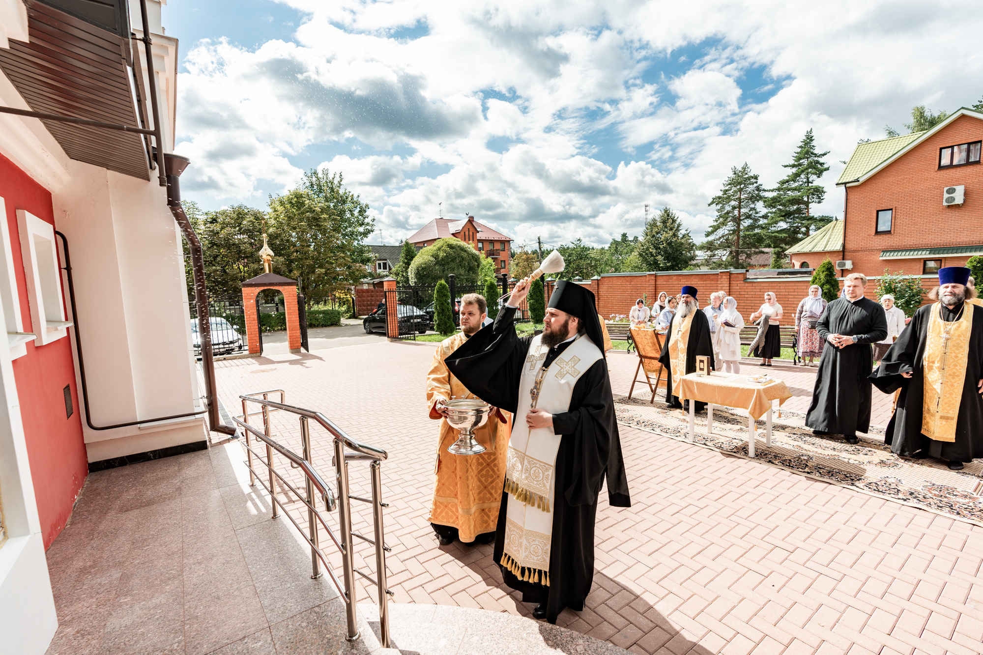 20 августа в Александро-Невском храме посёлка Александровка г.о. Подольск архиепископ Подольский и Люберецкий Аксий совершил водосвятный молебен и чин освящения мозаичных икон Спасителя, Пресвятой Богородицы и благоверного князя Александра Невского, установленных на фасаде храма.