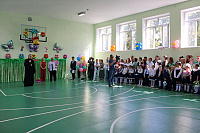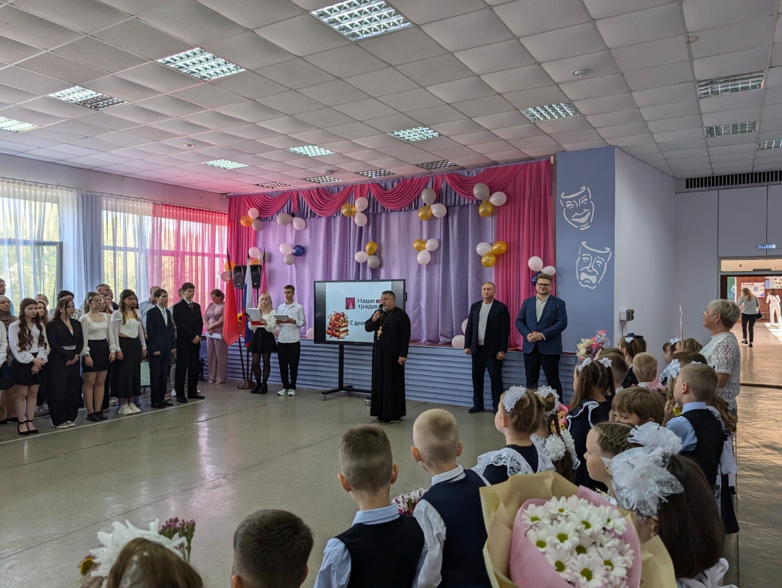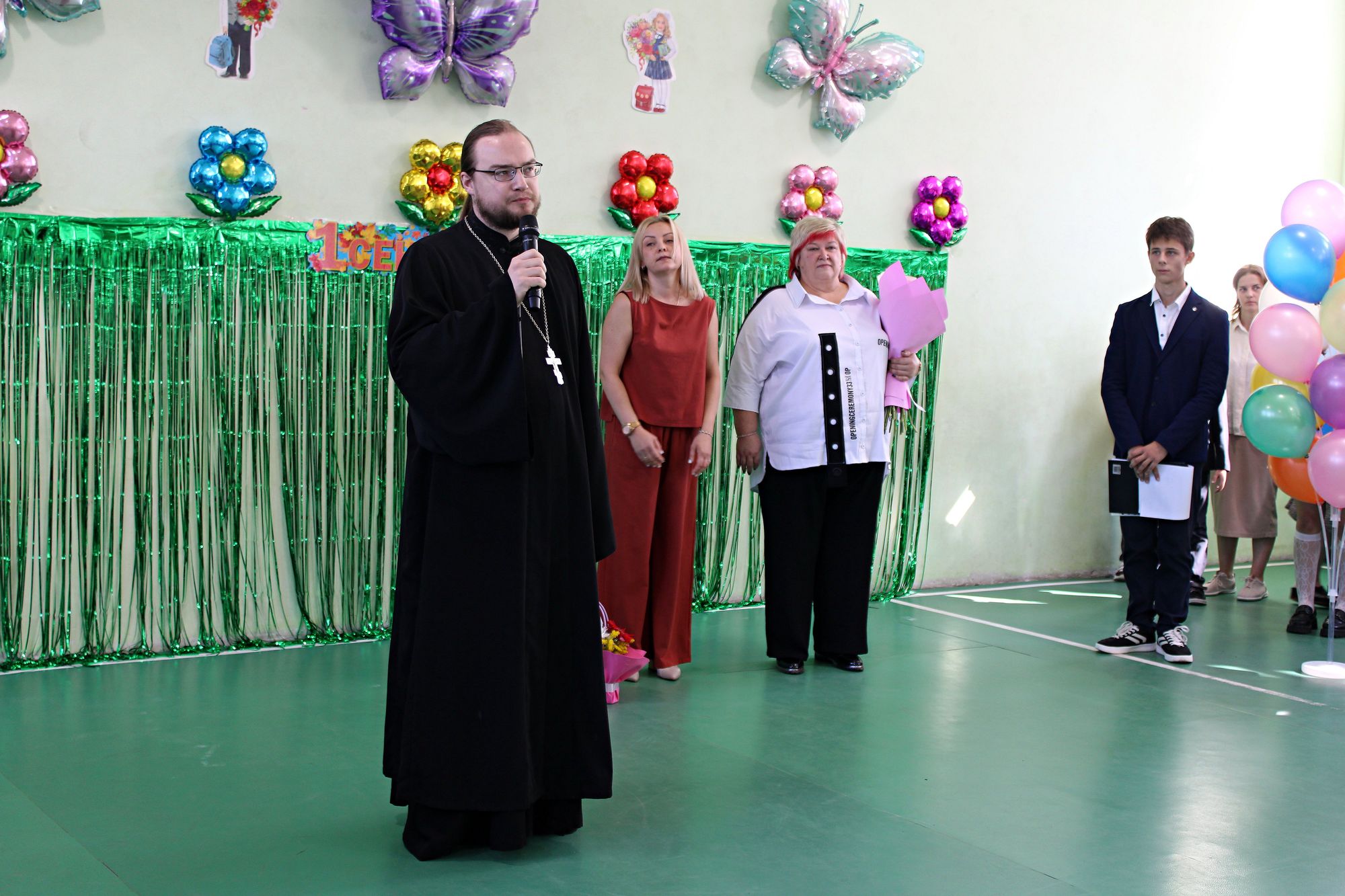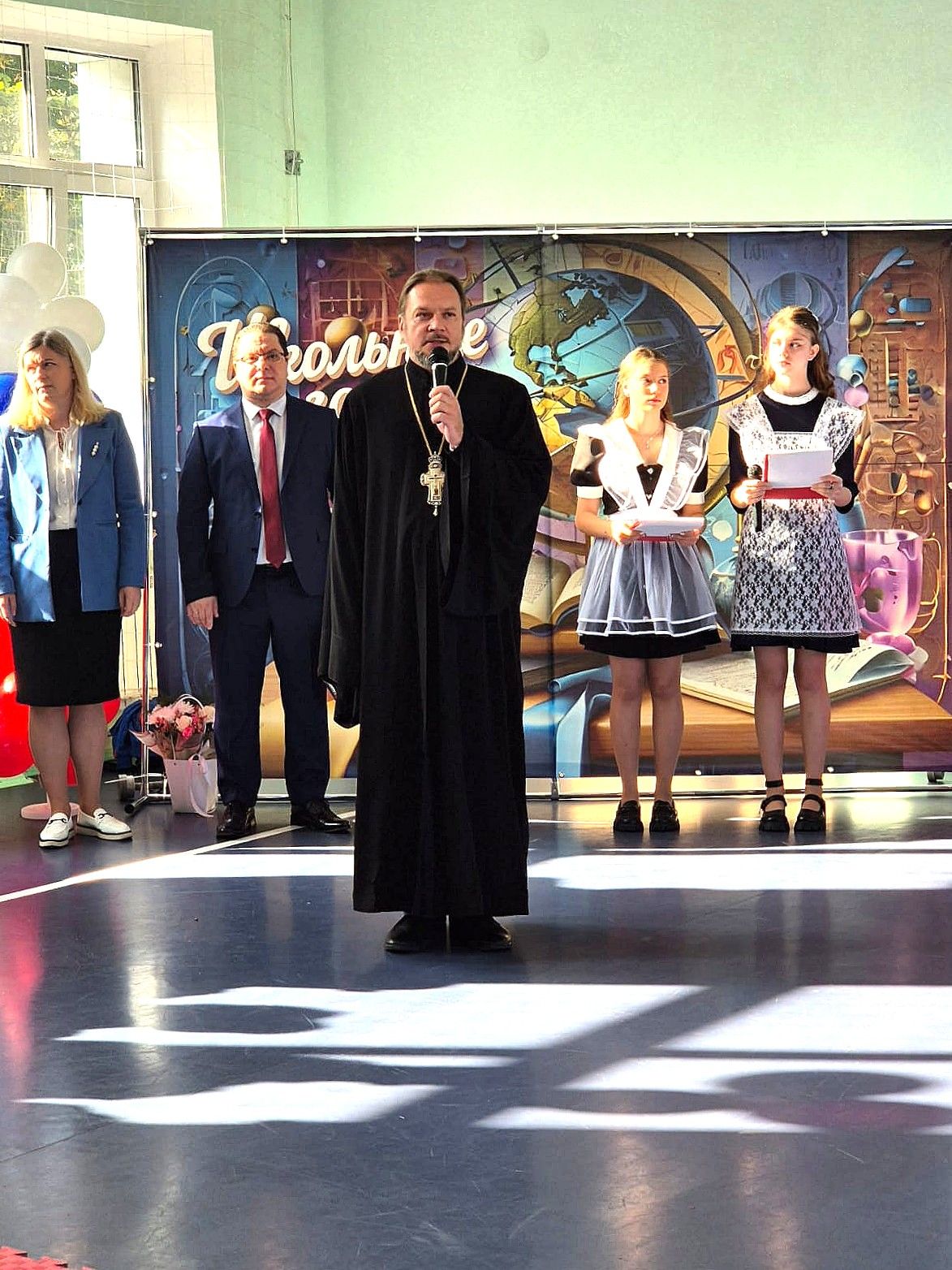 Настоятель Сергиевского храма иерей Илия Сычёв посетил МОУ «СОШ «Вектор», где поздравил всех собравшихся с началом учебного года и пожелал помощи Божией в учении.