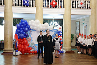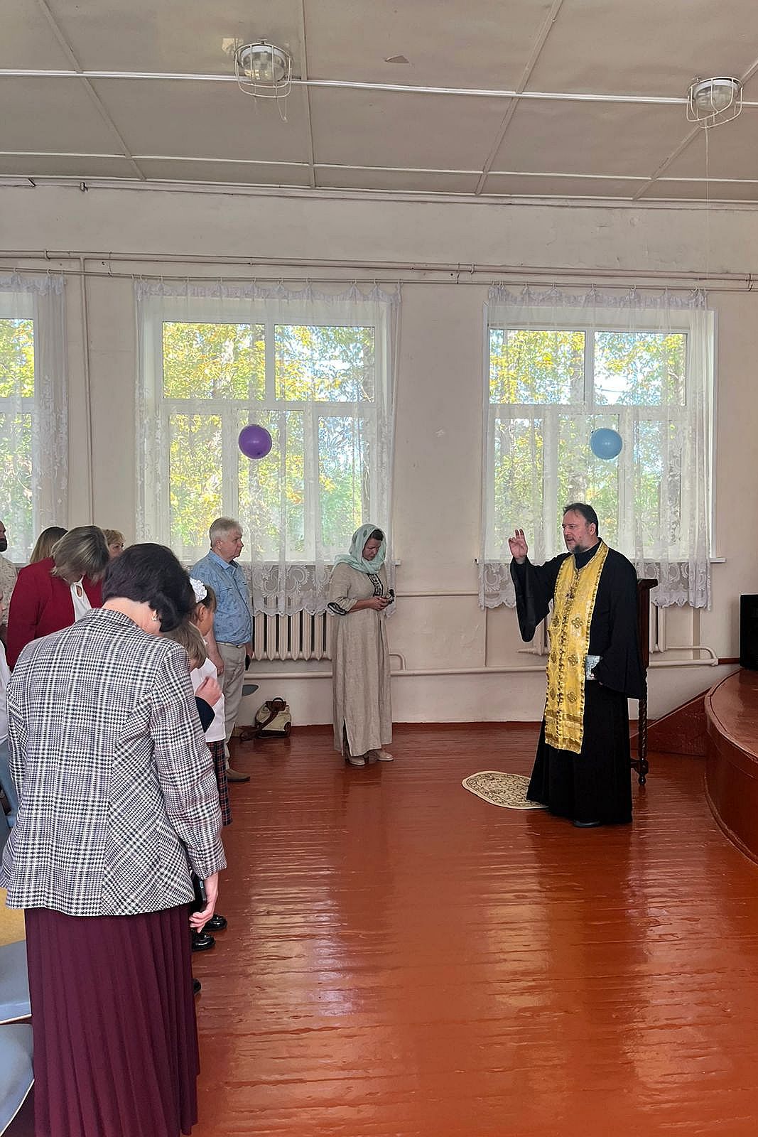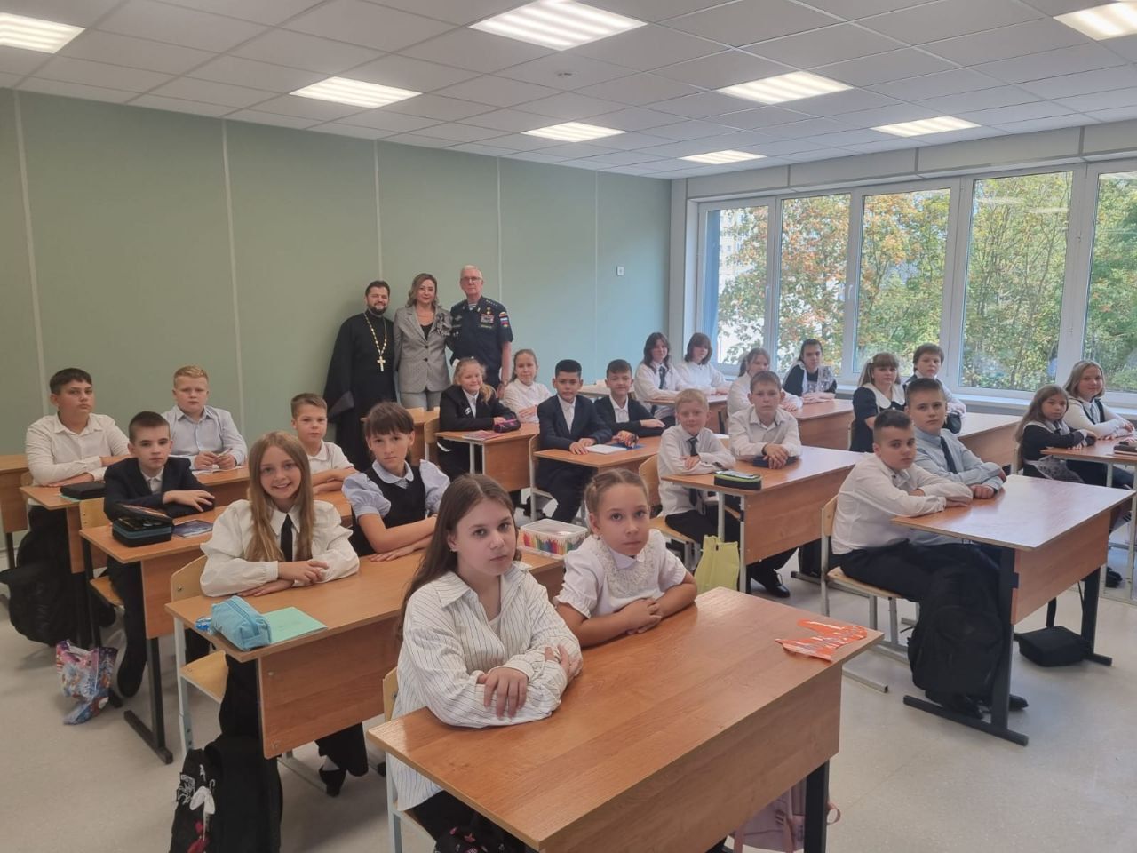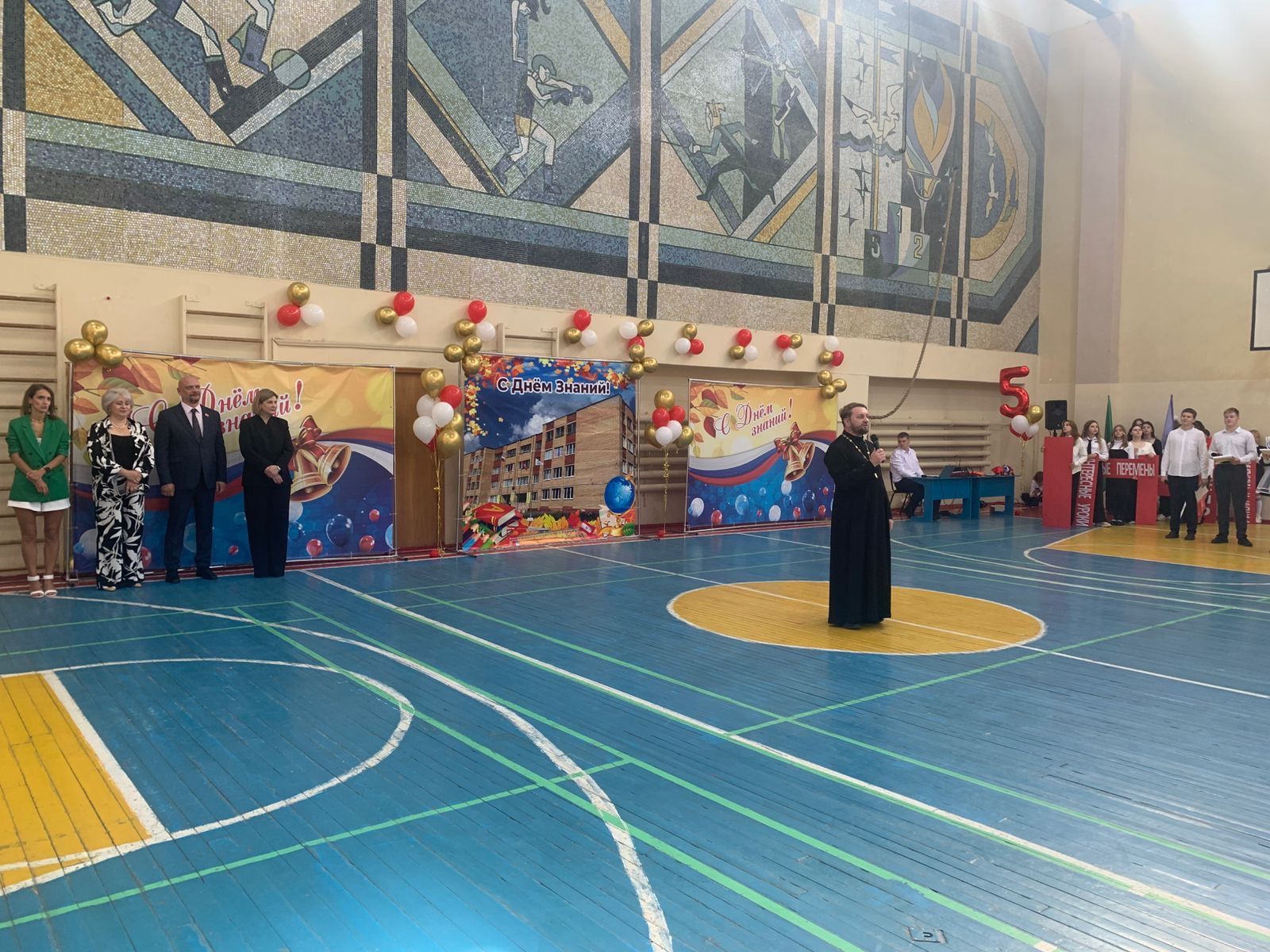Настоятель Сергиевского храма иерей Илия Сычёв посетил МОУ «СОШ «Вектор», где поздравил всех собравшихся с началом учебного года и пожелал помощи Божией в учении.