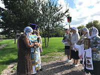 По окончании Божественной литургии и крестного хода настоятель иерей Илия Царьков поздравил собравшихся с праздником.