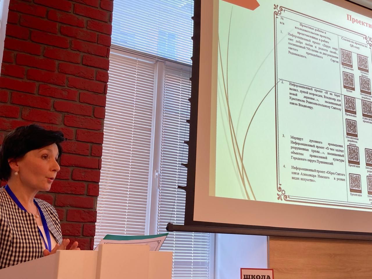 Н.В. Банникова, учитель музыки МБОУ г. Пушкино «Образовательный комплекс №3» выступила на секции "Традиционные ценности и мировоззрения современных подростков" с докладом «Процесс духовно-нравственного воспитания обучающихся 5–11 классов средствами проектной деятельности (обобщение опыта работы)».