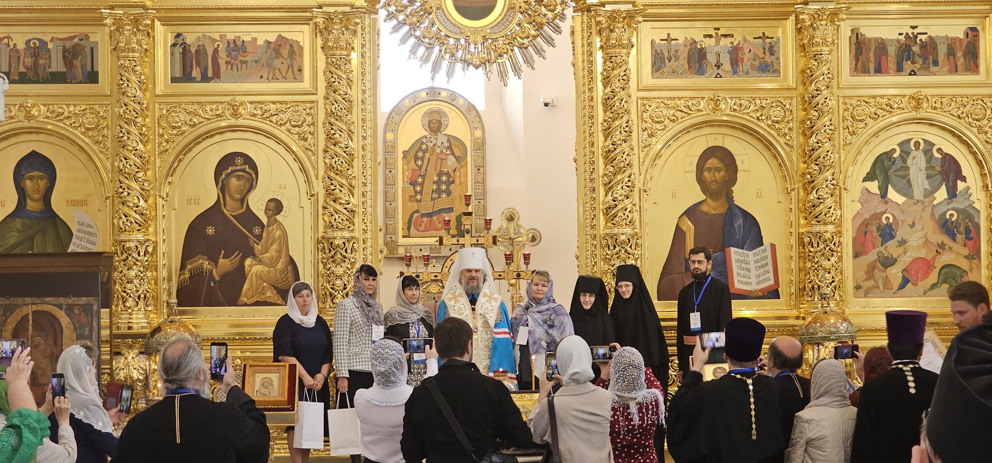Приветственный адрес председателя Синодального отдела религиозного образования и катехизации Русской Православной Церкви митрополита Екатеринбургского и Верхотурского Евгения зачитал иеромонах Трифон (Умалатов).