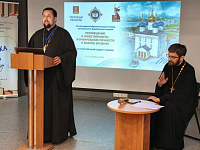 На секции «Духовно-нравственное просвещение в православных образовательных организациях" прозвучал доклад клирика Подольской епархии иерея Сергия Заплатникова "Опыт организации духовно-нравственного воспитания детей в православном киноклубе».