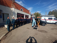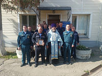 17 сентября, в день праздника иконы Божией Матери «Неопалимая Купина», Пожарную часть №207 МЧС России в Серебряных Прудах посетил благочинный церковного округа иерей Владимир Шубин. Отец Владимир в присутствии личного состава отслужил молебен Пресвятой Богородицы, окропил святой водой служащих, а также был освящён новый автомобиль. Отец благочинный поздравил собравшихся с праздником, пожелал всем крепкого здоровья и помощи Божией в нелегком, но очень важном труде работников МЧС. В завершение батюшка преподнес организации в дар образ Пресвятой Богородицы «Неопалимая Купина».