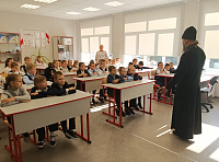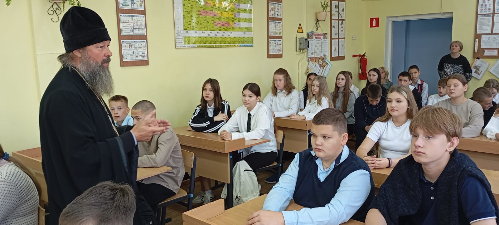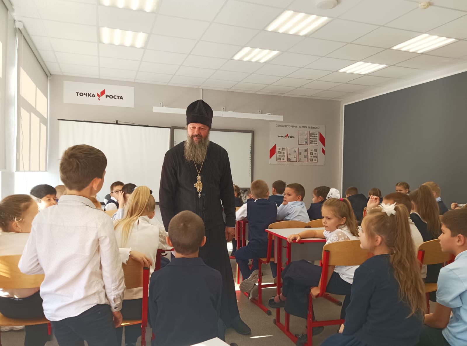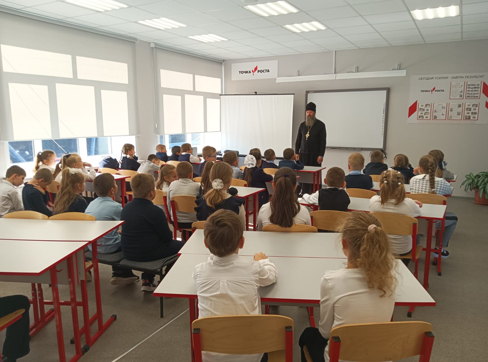 В рамках регионального проекта «Задай вопрос священнику» в МОУ «Пановская СОШ» п. Лесной проходят встречи настоятеля Богородицерождественского храма д. Богородское протоиерея Владимира Пахачева с учащимися школы.