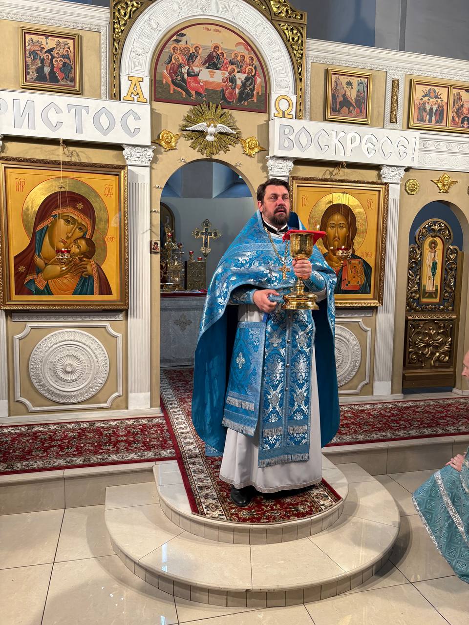 После заамвонной молитвы было совершено славление у праздничной иконы, затем отец Димитрий обратился к прихожанам с пастырским словом.