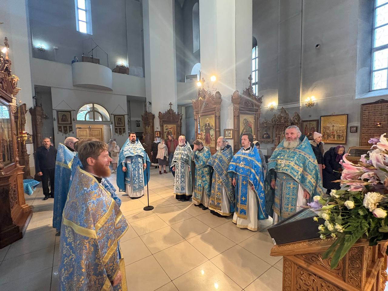 25 сентября, в день отдания праздника Рождества Пресвятой Богородицы, соборное богослужение в Преображенском храме города Жуковского возглавил благочинный Жуковского церковного округа иерей Димитрий Денисов. Ему сослужили настоятели и клирики приходов благочиния.