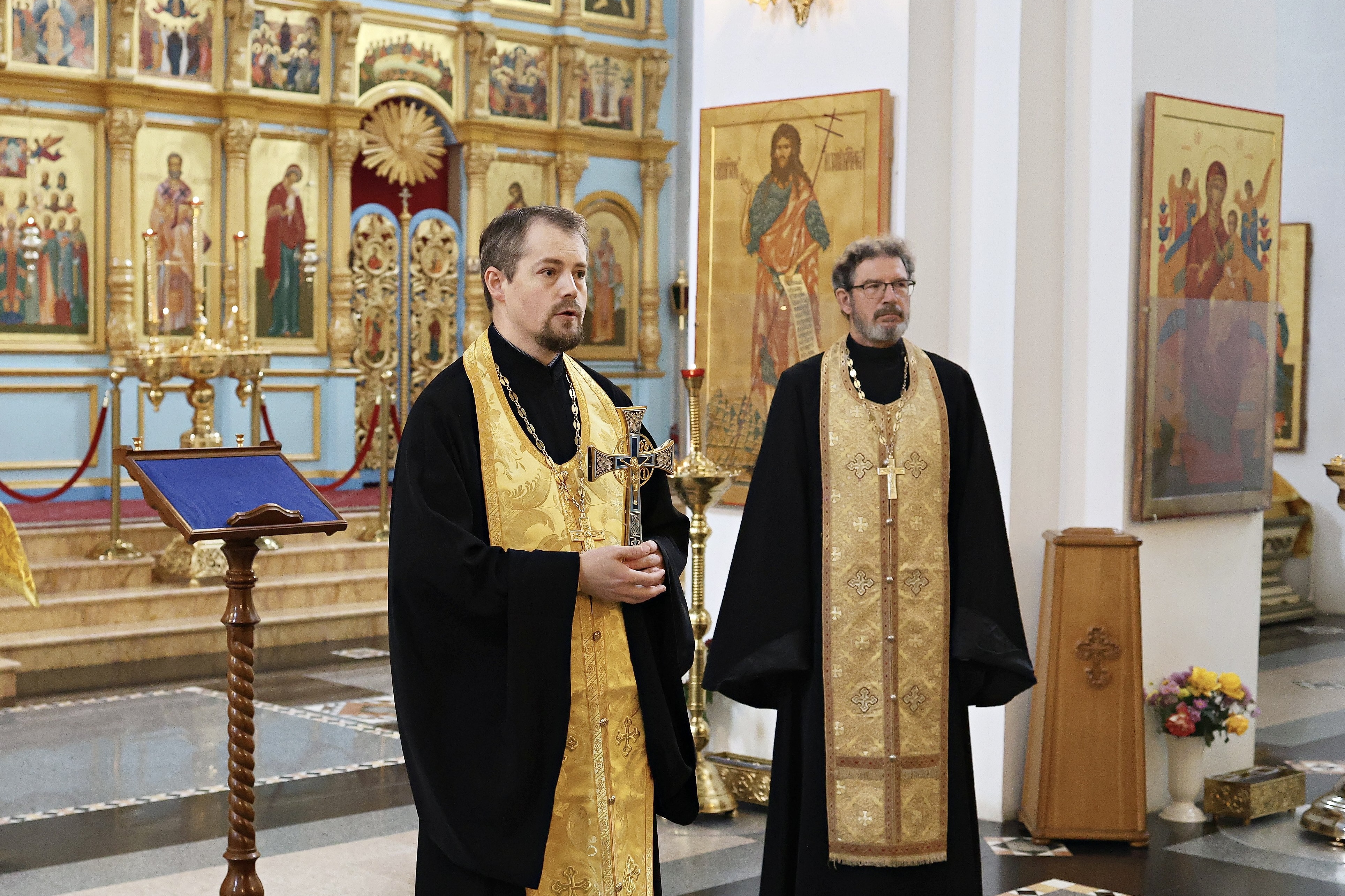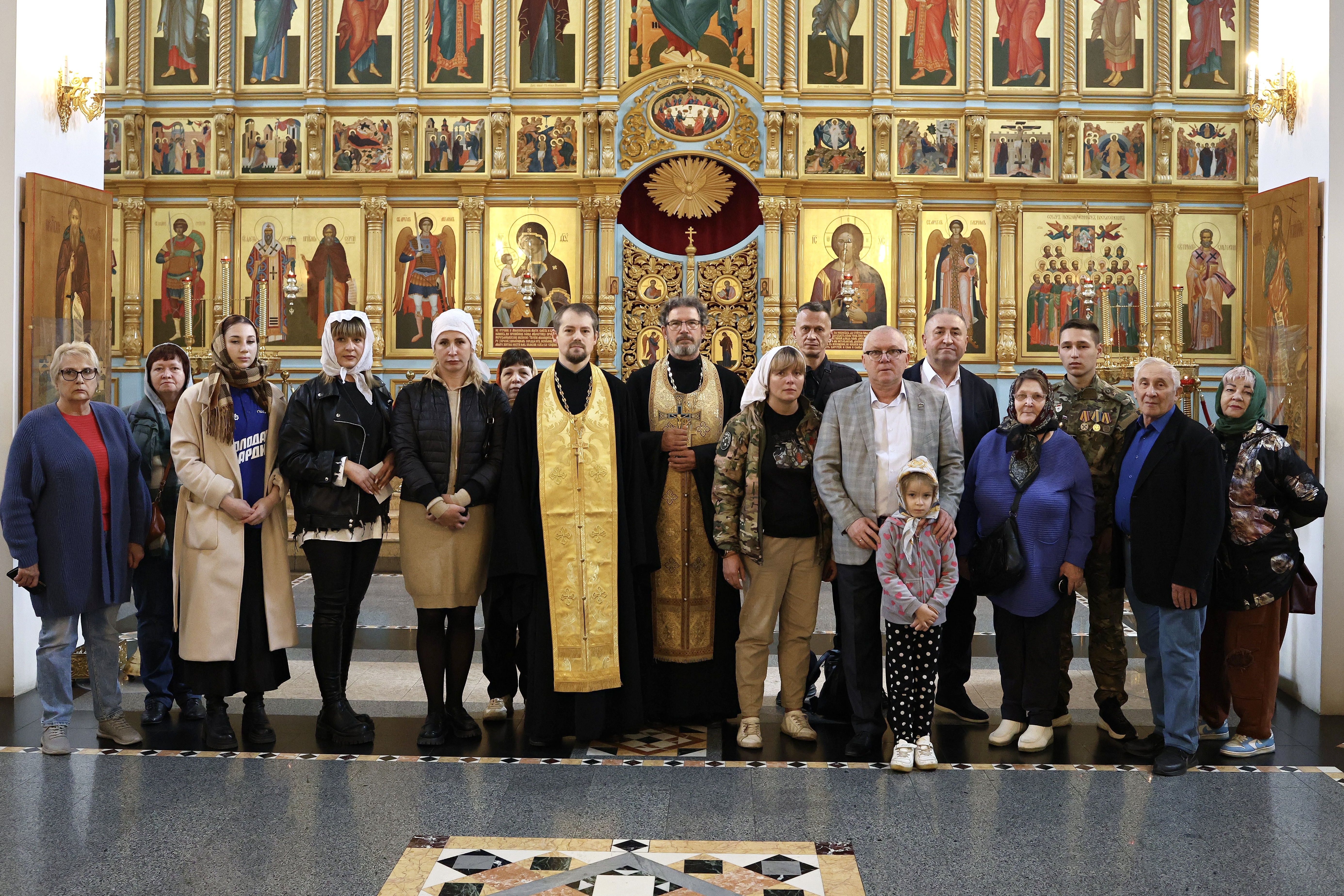Богослужение совершил благочинный 1-го Воскресенского округа протоиерей Кирилл Седов в сослужении ответственного за работу с семьями участников СВО иерея Виктора Грачёва.