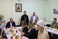 По окончании молебна состоялось чаепитие и общение присутствующих со священнослужителями и депутатами.